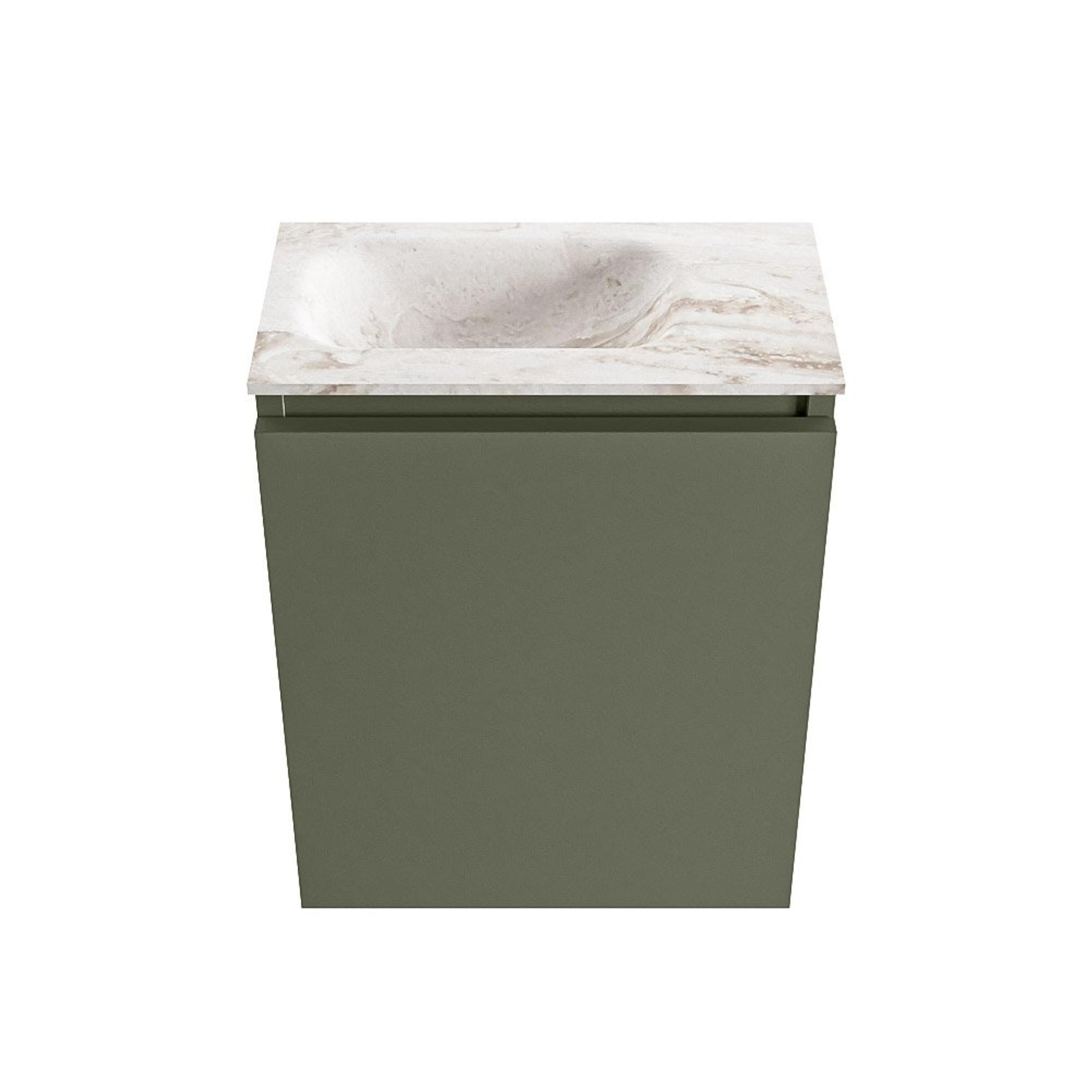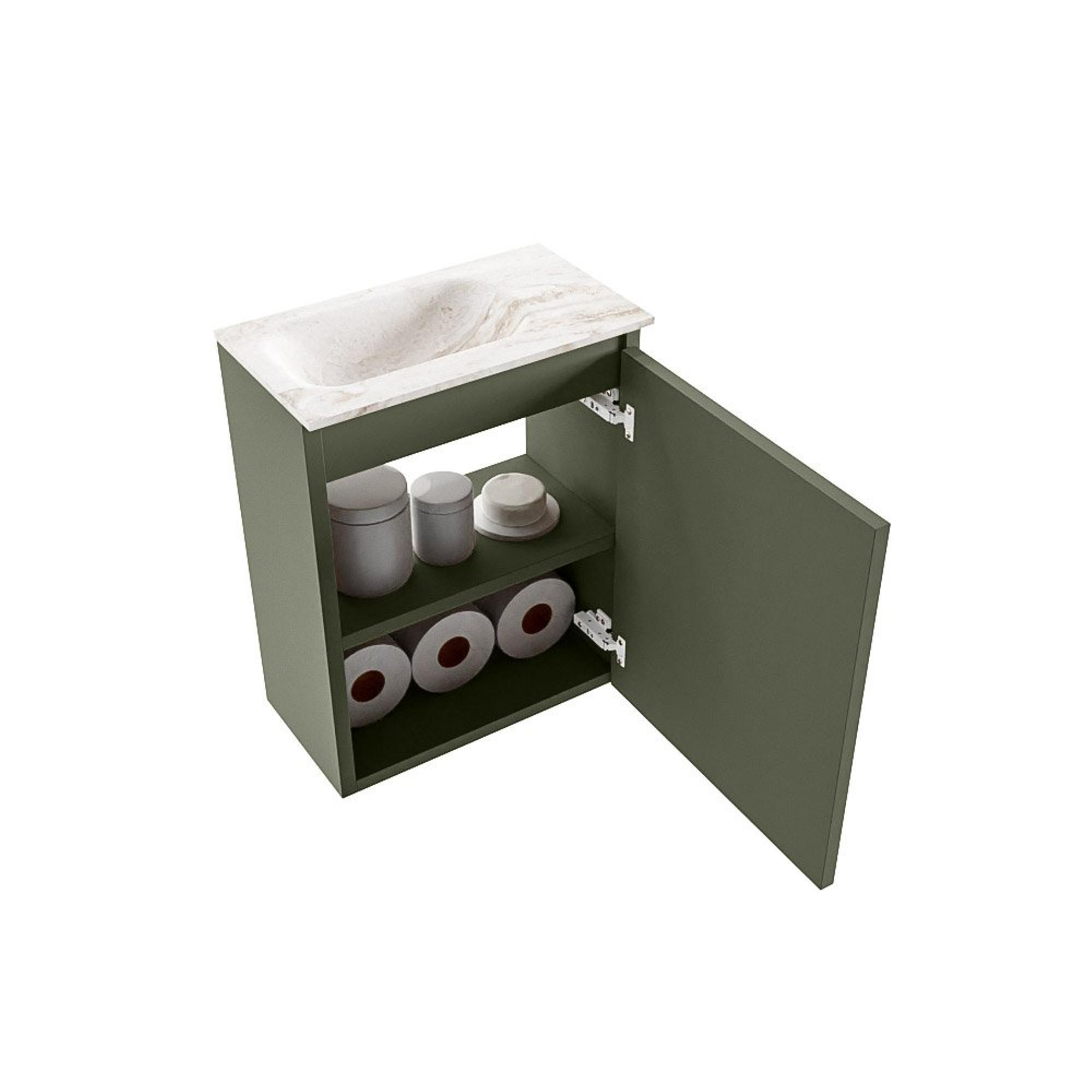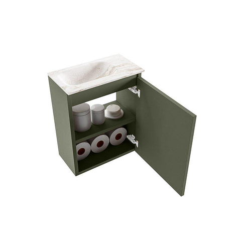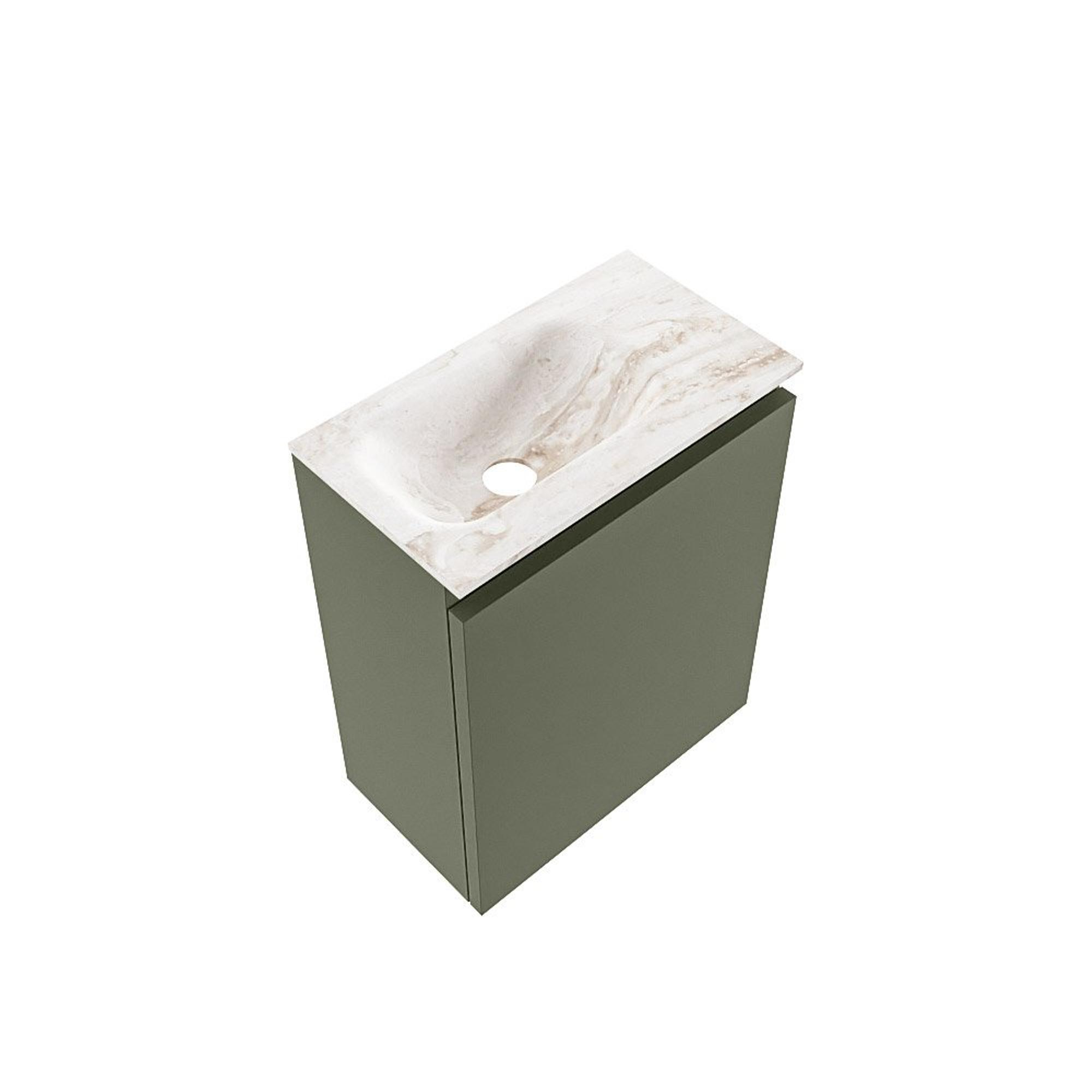 MONDIAZ TURE-DLUX Meuble WC 40 cm Army. EDEN vasque Frappe position gauche. Sans trou de robinet.