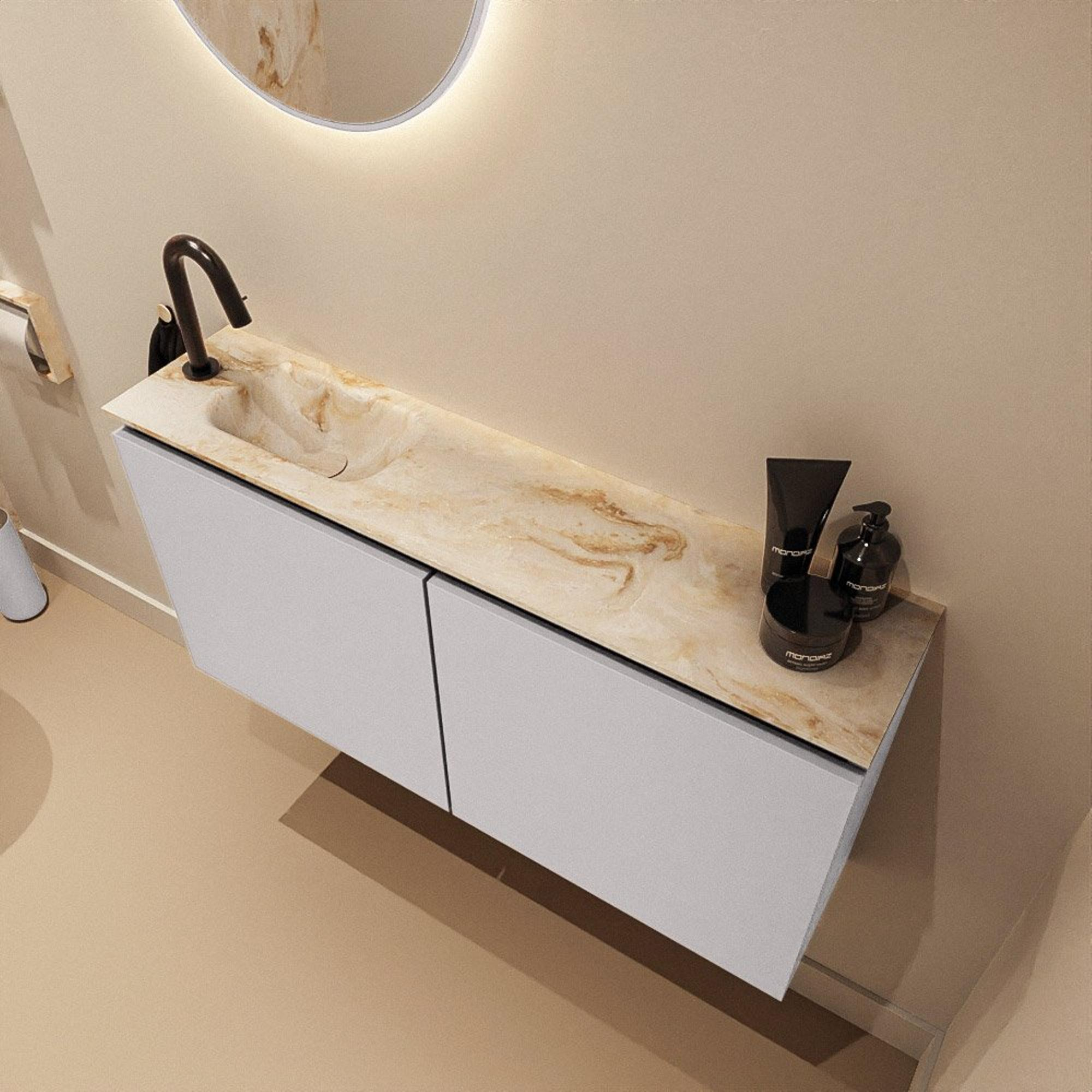 MONDIAZ TURE-DLUX 100cm meuble de toilettes Cale. EDEN lavabo Frappe position gauche. Avec 1 trou de robinet.