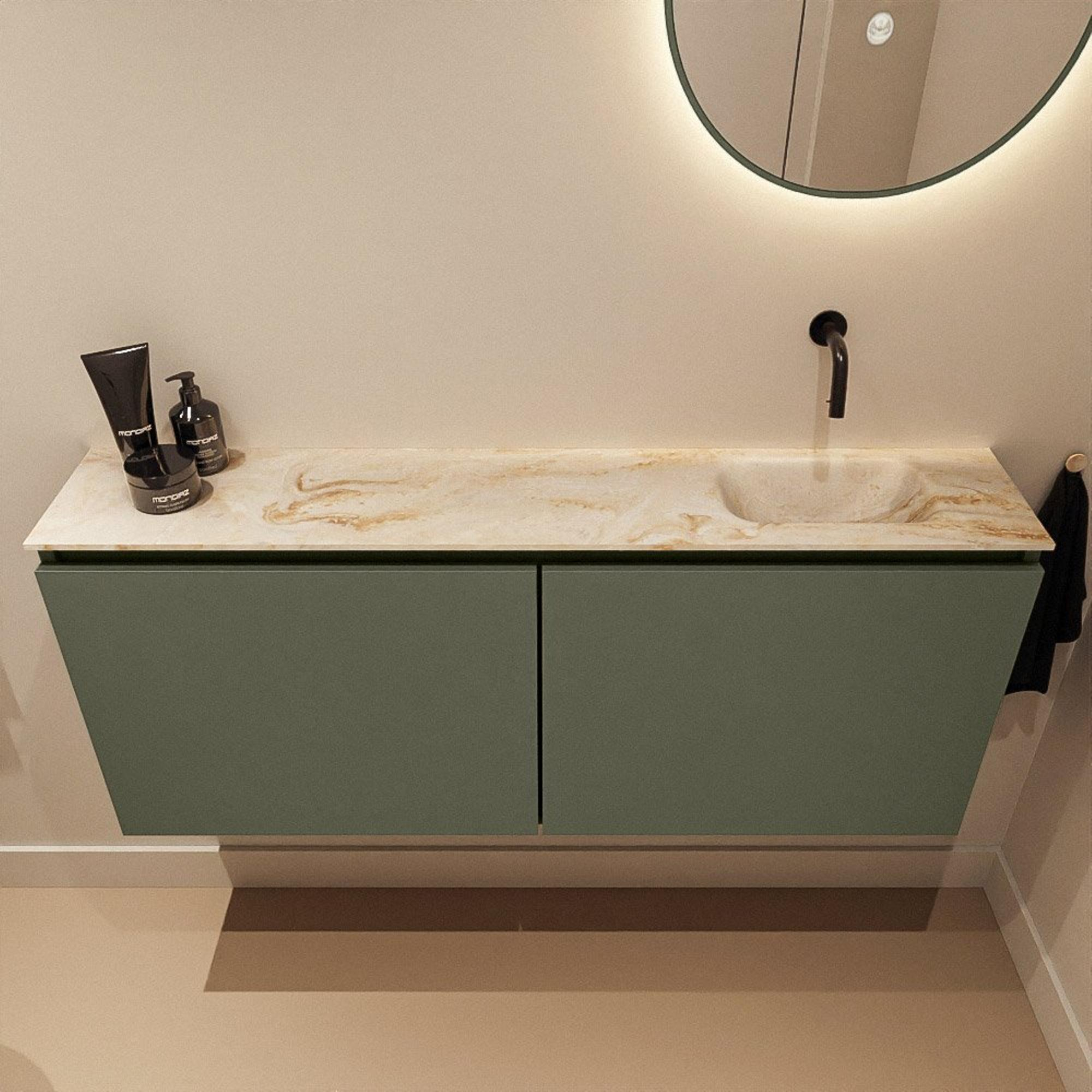 MONDIAZ TURE-DLUX 120cm meuble WC Army. EDEN lavabo Frappe position droite. Sans trou de robinet.