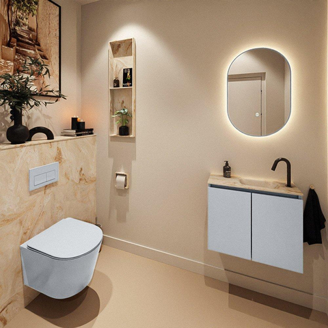MONDIAZ TURE-DLUX Meuble de toilettes 60cm Clay. EDEN lavabo Frappe position à droite. Avec 1 trou de robinet.