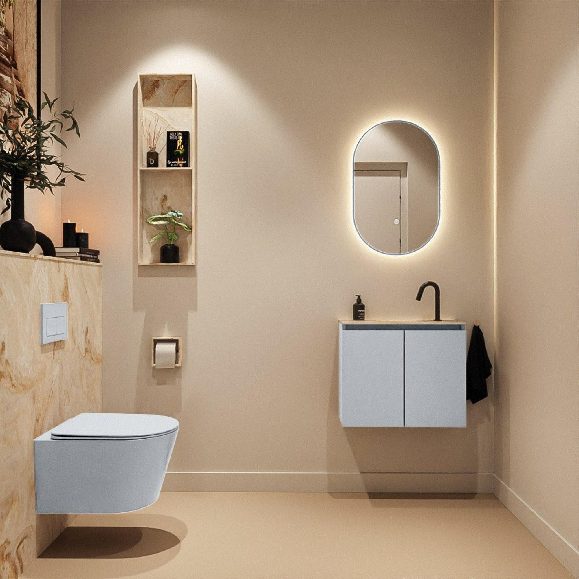 Avec une largeur de 60 cm et une faible profondeur de seulement 23 cm, vous exploitez au mieux l’espace disponible, sans que le meuble ne gêne le passage. Cela rend ce modèle parfait pour les WC étroits, les niches ou une deuxième salle de bains compacte. Le lavabo est intelligemment positionné au centre, de sorte que vous pouvez vous laver les mains confortablement sans heurter le mur ou la porte. Grâce à la pose murale, le sol reste libre, ce qui donne non seulement une impression de plus grand espace, mais rend également le nettoyage du sol beaucoup plus facile. Vous combinez ainsi un confort de circulation optimal avec un aménagement soigné et bien pensé de vos toilettes.