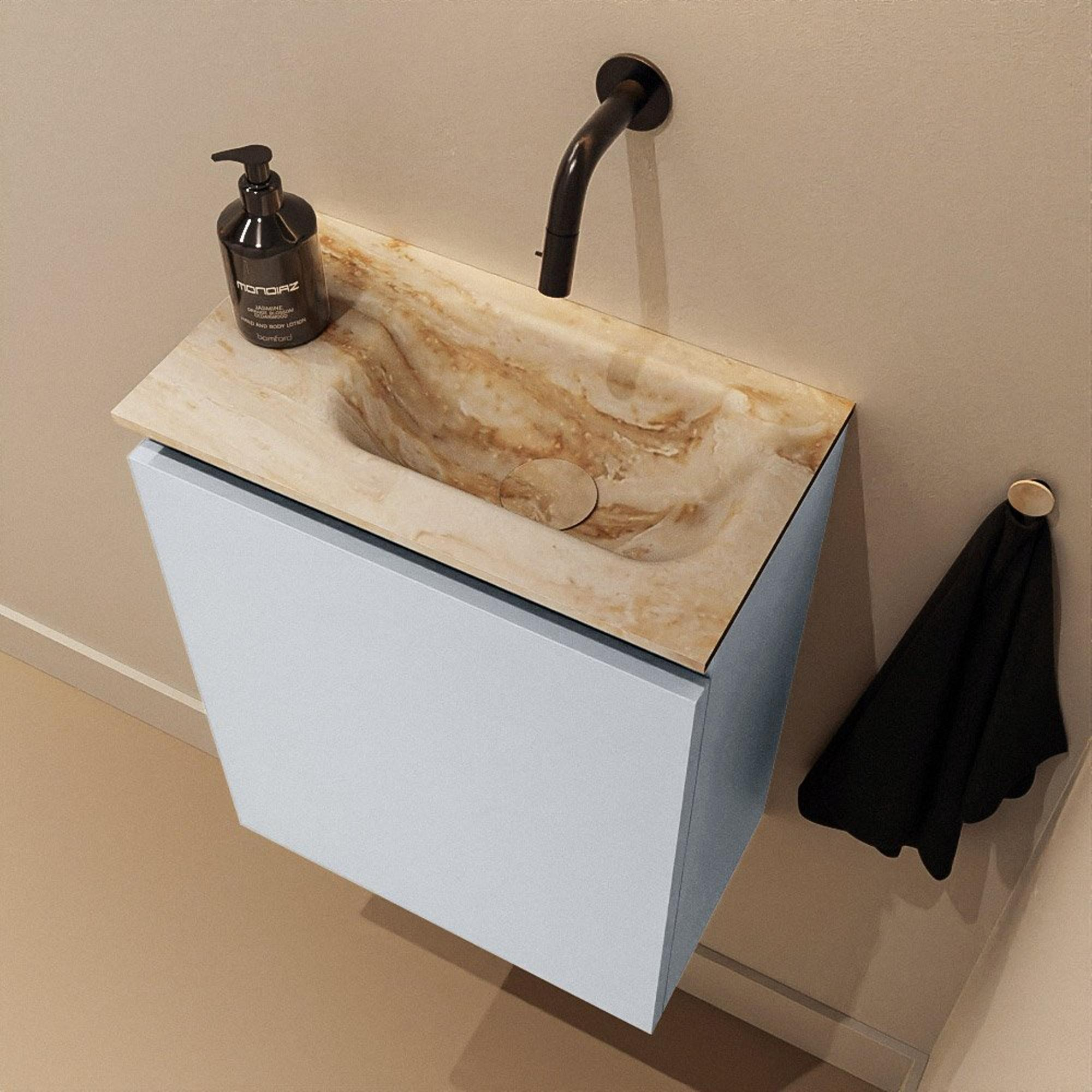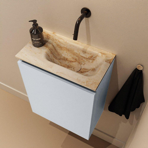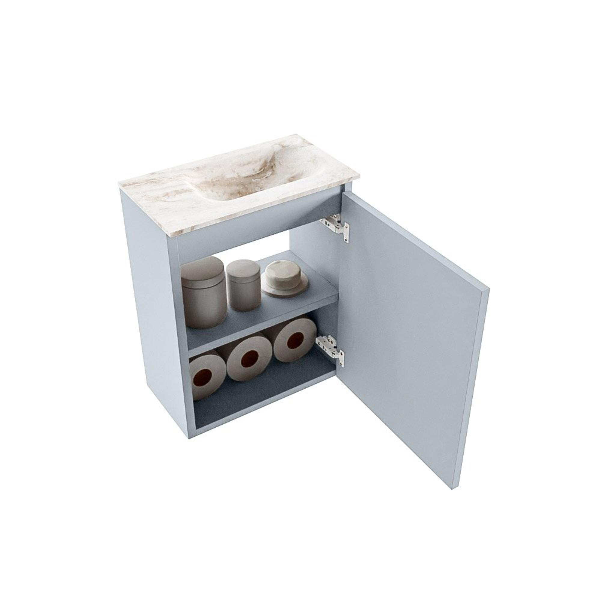 MONDIAZ TURE-DLUX Meuble de toilettes 40 cm Clay. Lavabo EDEN Frappe position droite. Sans trou de robinet.