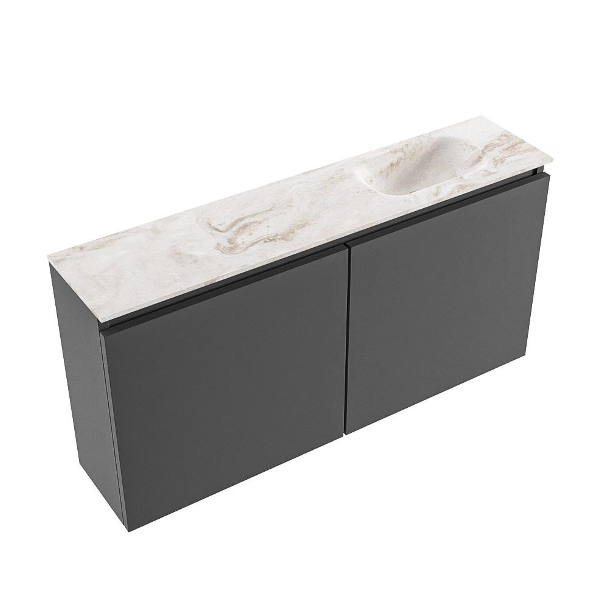 MONDIAZ TURE-DLUX Meuble WC 100 cm Dark Grey. EDEN lavabo Frappe position droite. Sans trou de robinet.