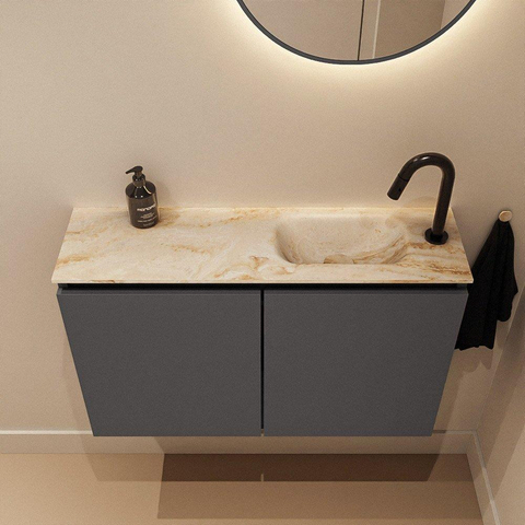 MONDIAZ TURE-DLUX Meuble WC 80 cm Dark Grey. Lavabo EDEN Frappe position droite. Avec 1 trou de robinet.