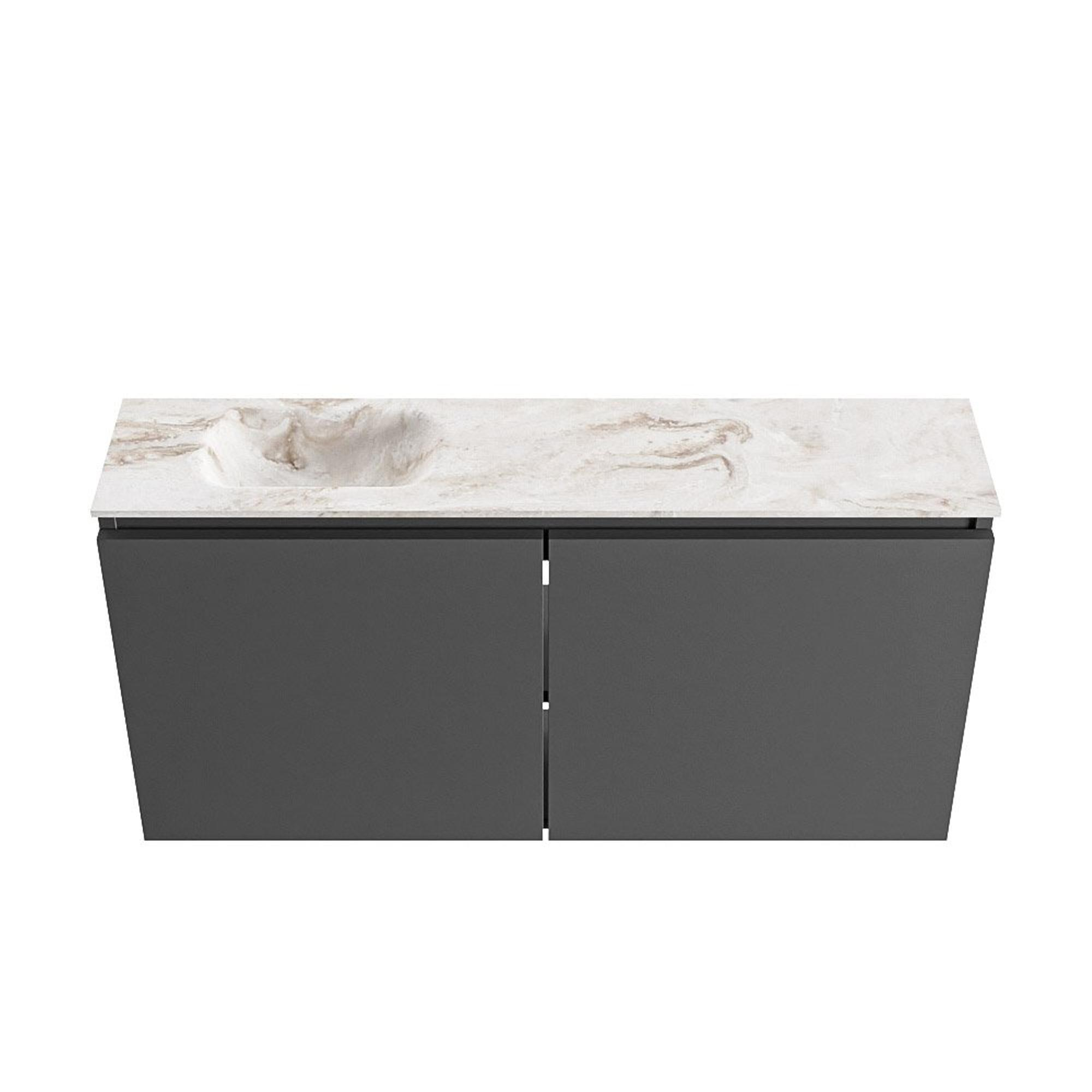 MONDIAZ TURE-DLUX 100cm meuble de toilettes Dark Grey. EDEN lavabo Frappe position gauche. Sans trou de robinet.