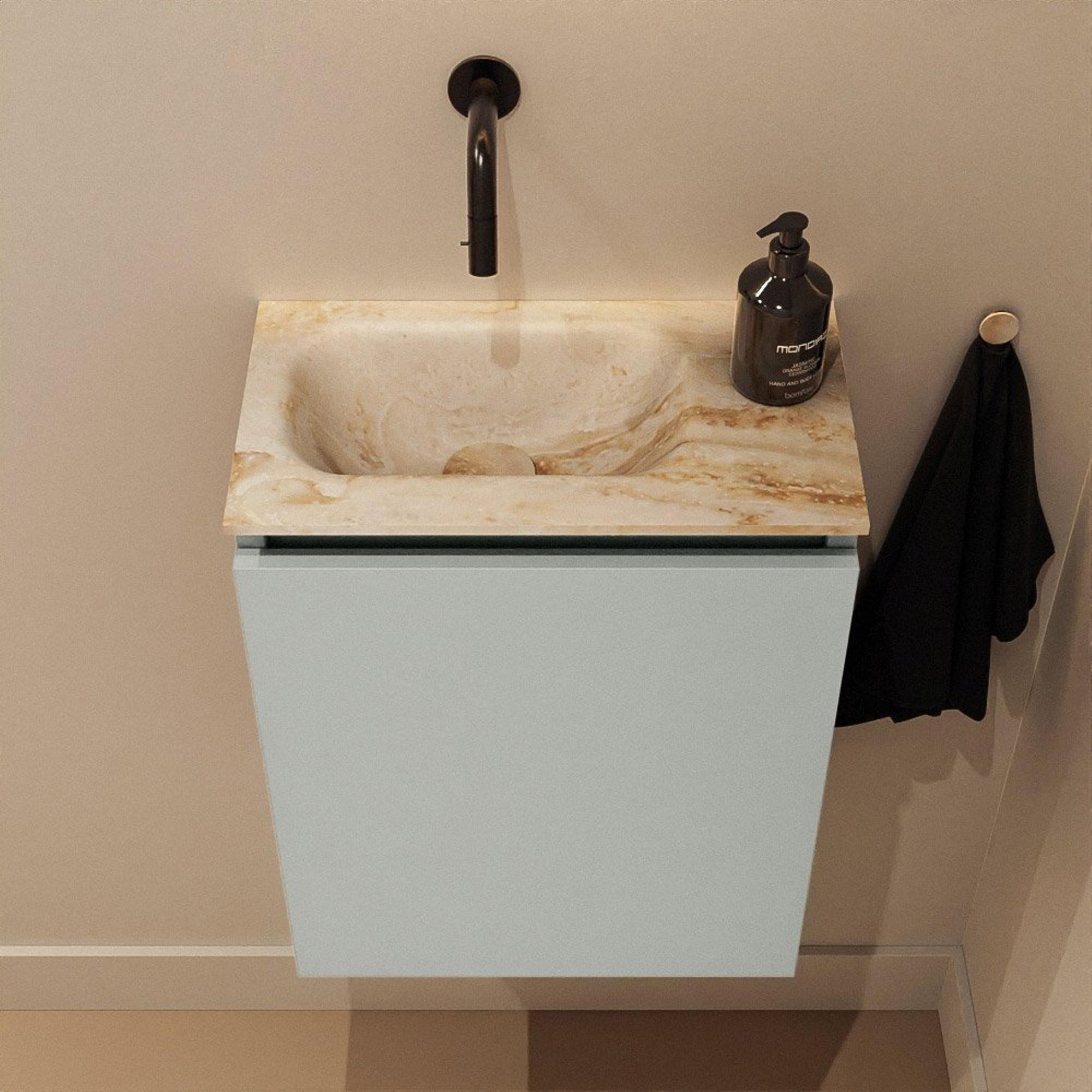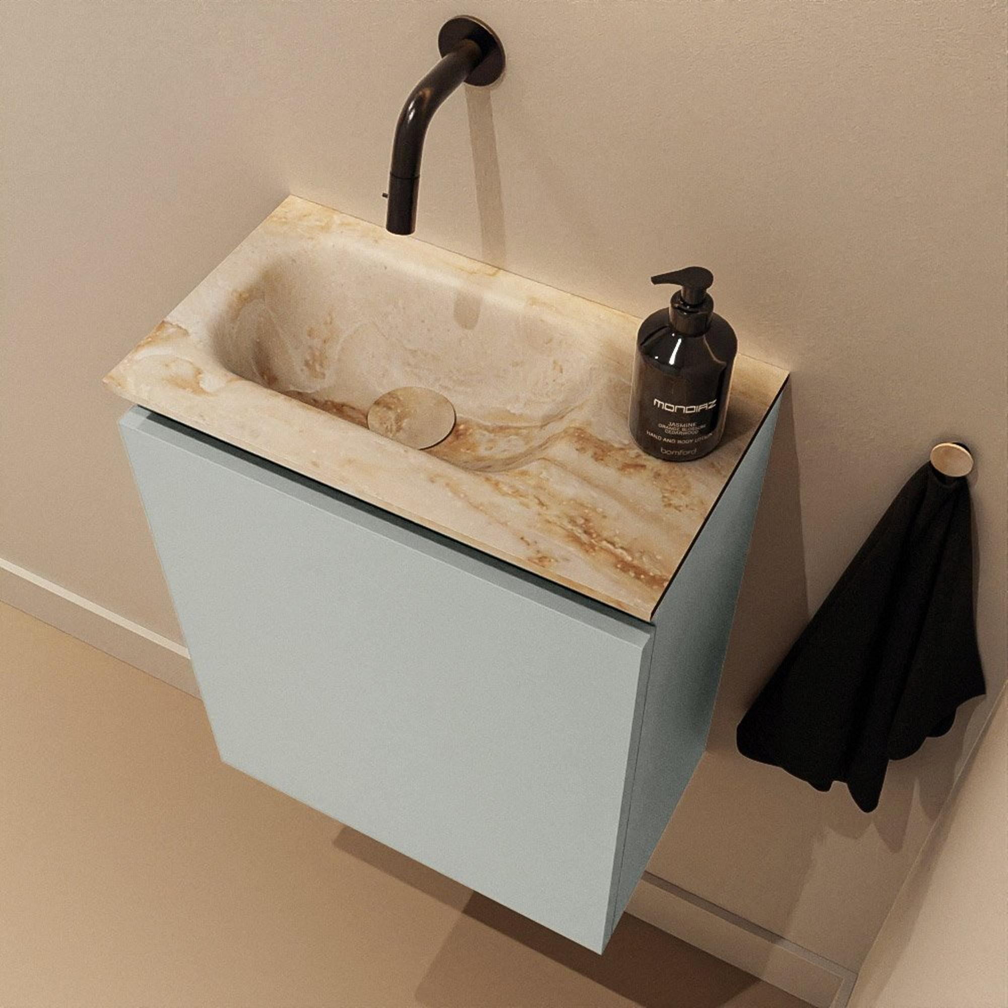 MONDIAZ TURE-DLUX Meuble de toilettes 40 cm Greey. EDEN lavabo Frappe position gauche. Sans trou de robinet.
