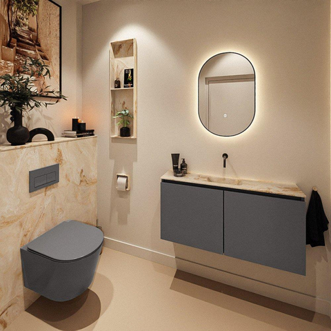 MONDIAZ TURE-DLUX 100cm meuble WC Dark Grey. EDEN lavabo Frappe position milieu. Sans trou de robinet.