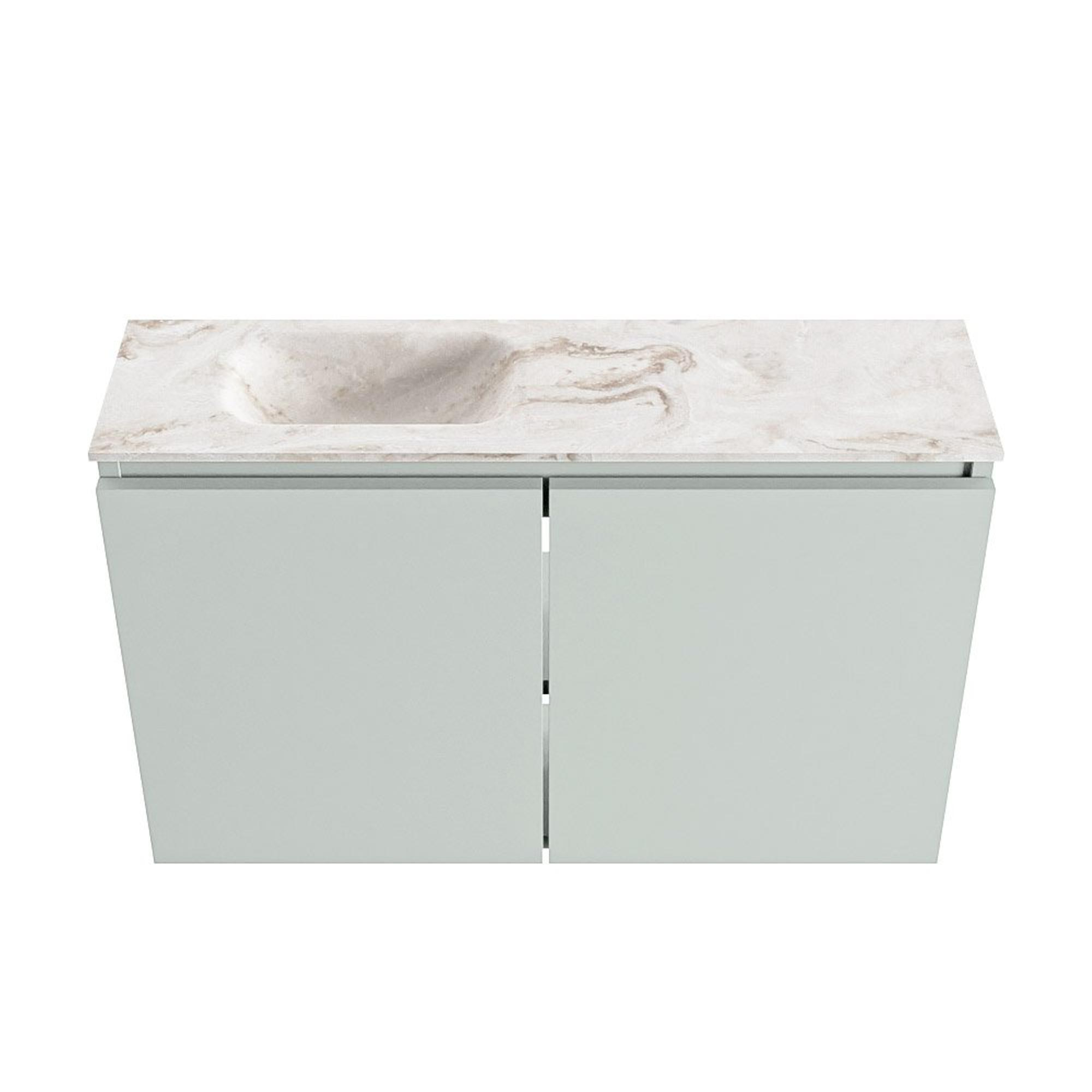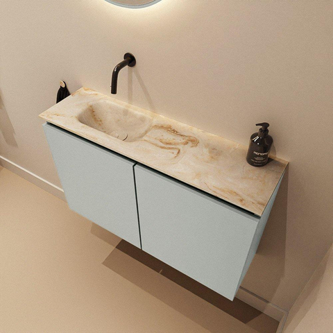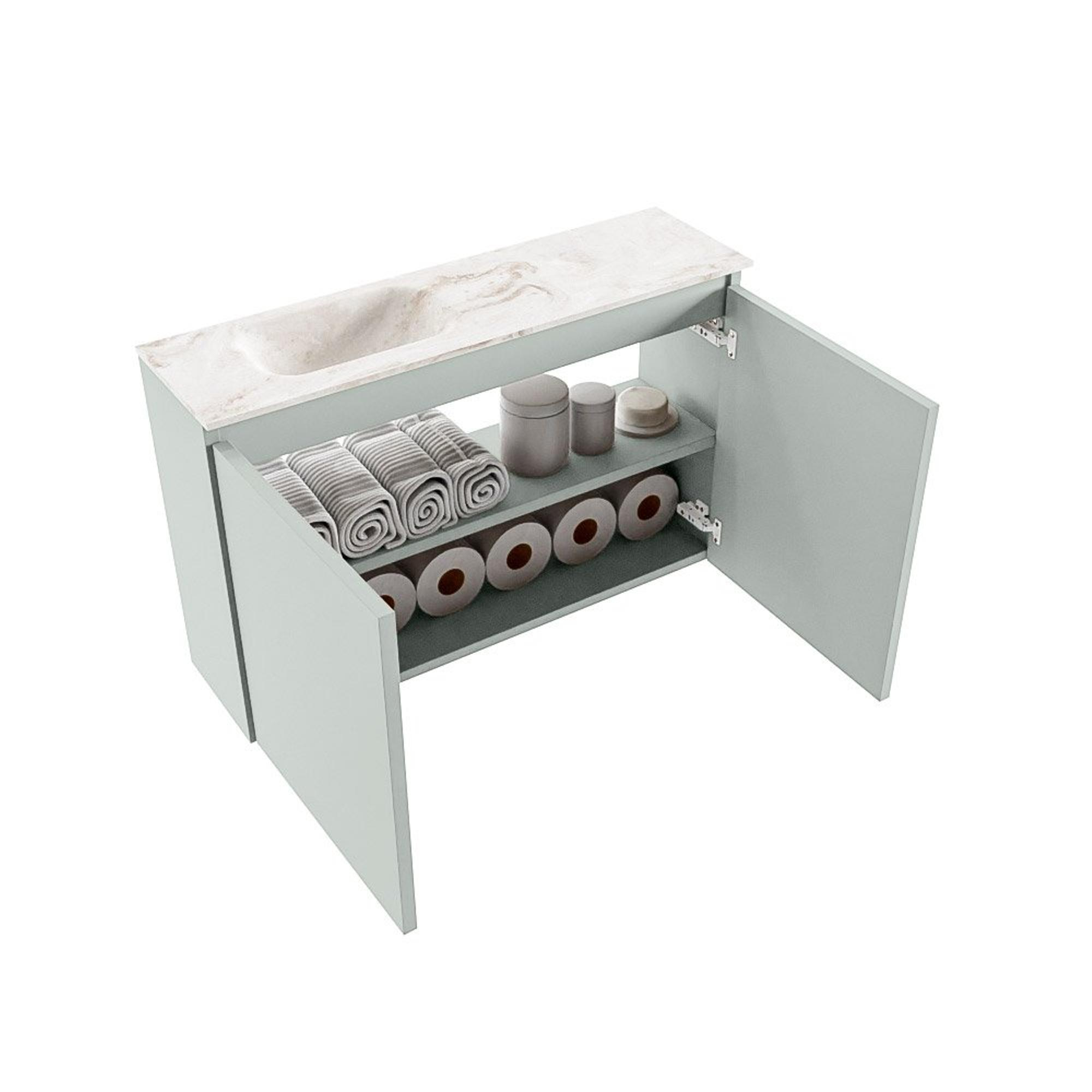 MONDIAZ TURE-DLUX Meuble de toilettes 80cm Greey. EDEN vasque Frappe position gauche. Sans trou de robinet.