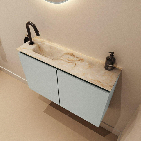 MONDIAZ TURE-DLUX Meuble WC 80 cm Greey. Lavabo EDEN Frappe position gauche. Avec 1 trou de robinet.
