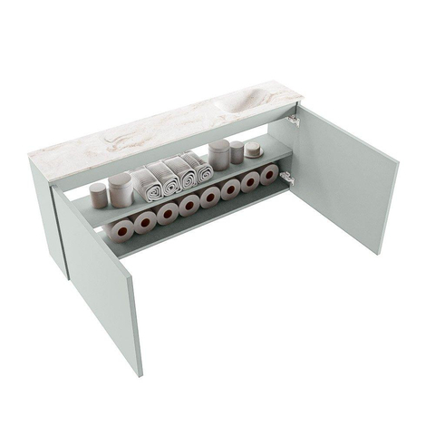 MONDIAZ TURE-DLUX Meuble de WC 120 cm Greey. Lavabo EDEN Frappe position droite. Sans trou de robinet.
