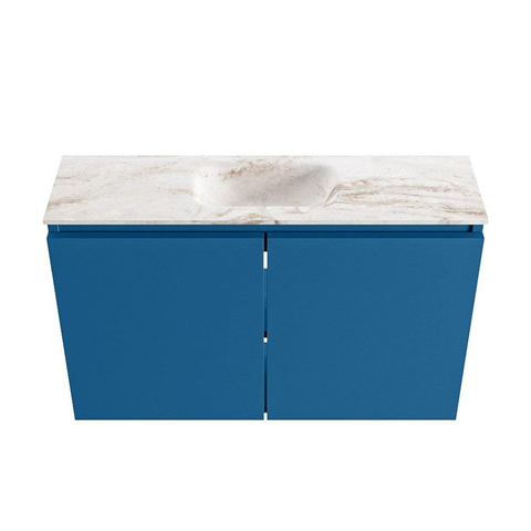 - Meuble moderne Jeans-bleu avec lavabo Eden beige chaud en couleur Frappe