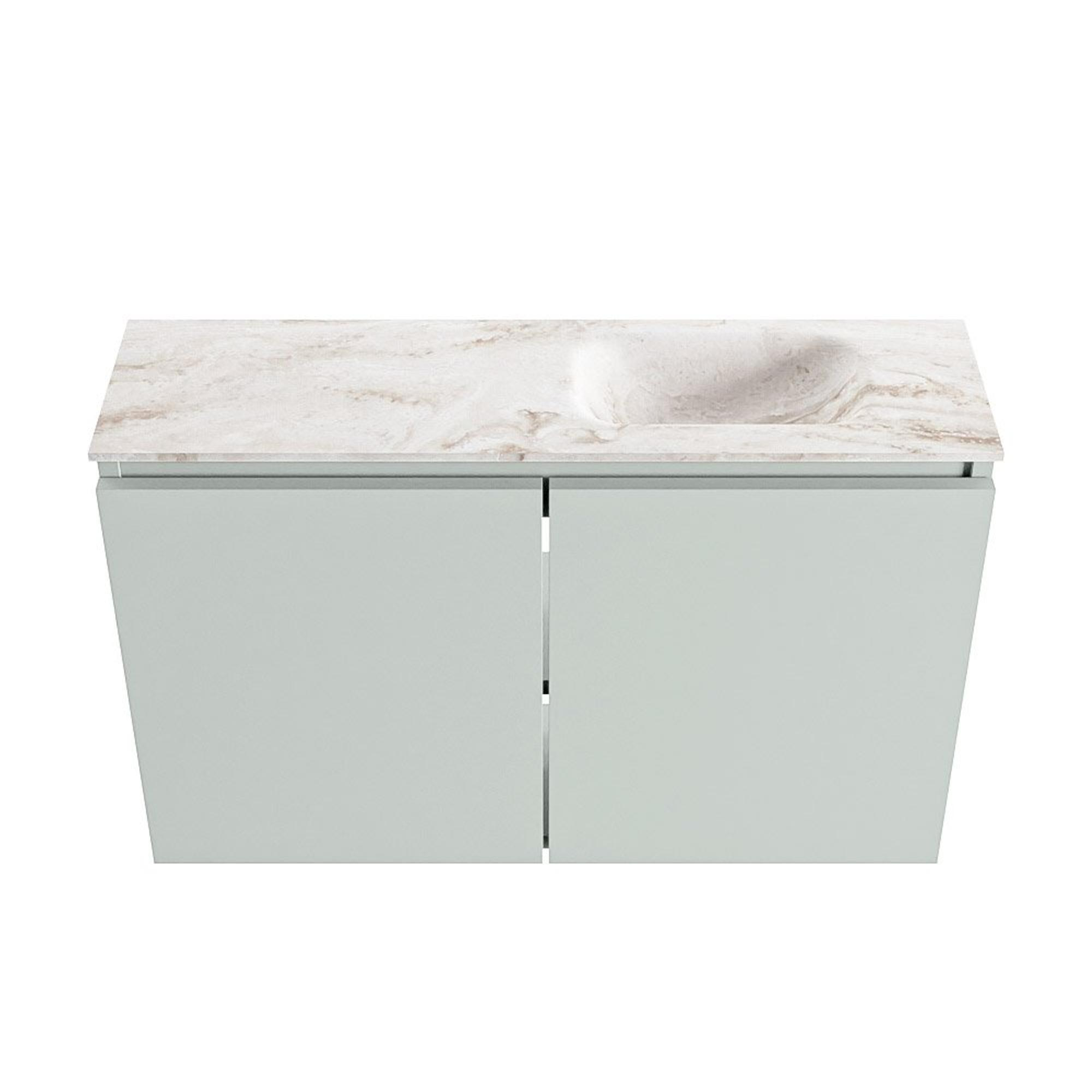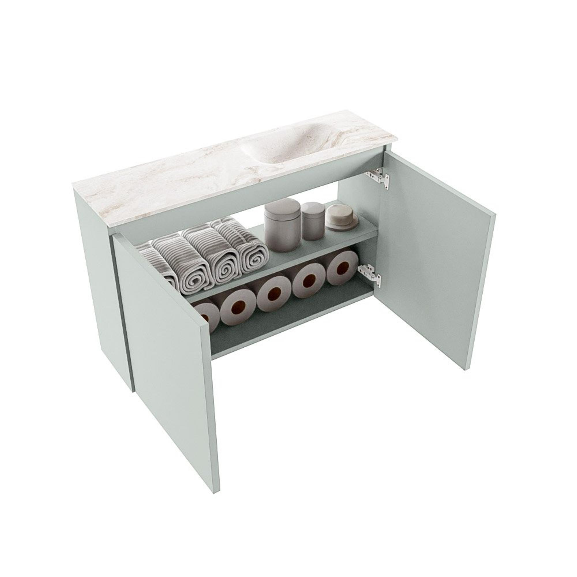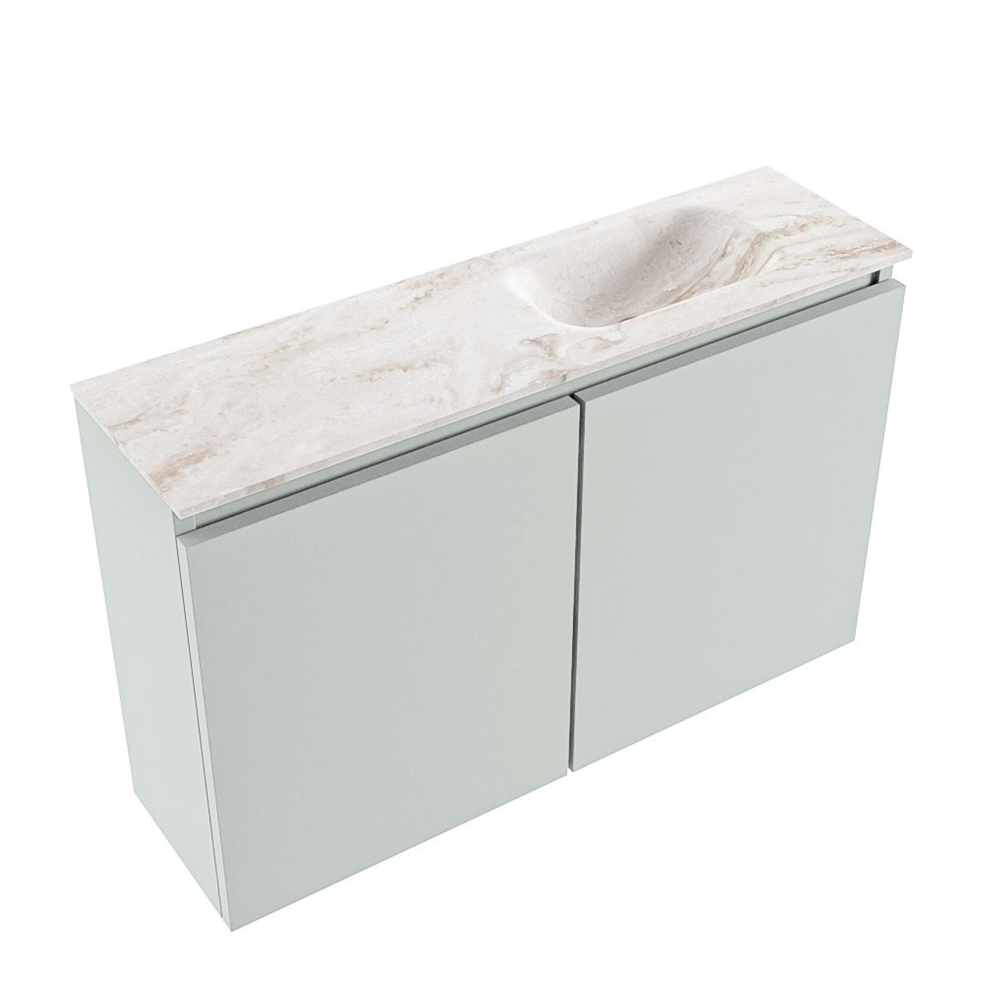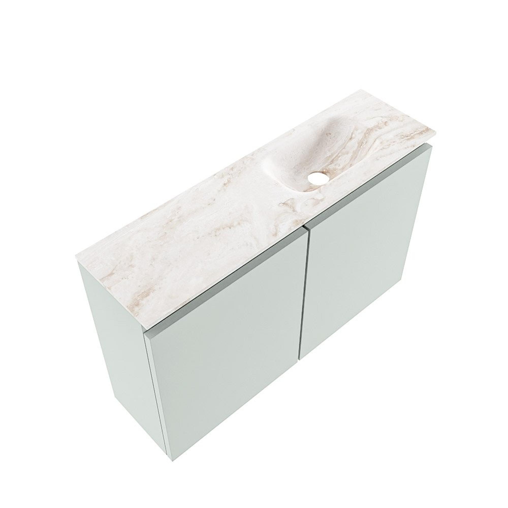 MONDIAZ TURE-DLUX Meuble de toilettes 80 cm Greey. Lavabo EDEN Frappe position à droite. Avec 1 trou de robinet.