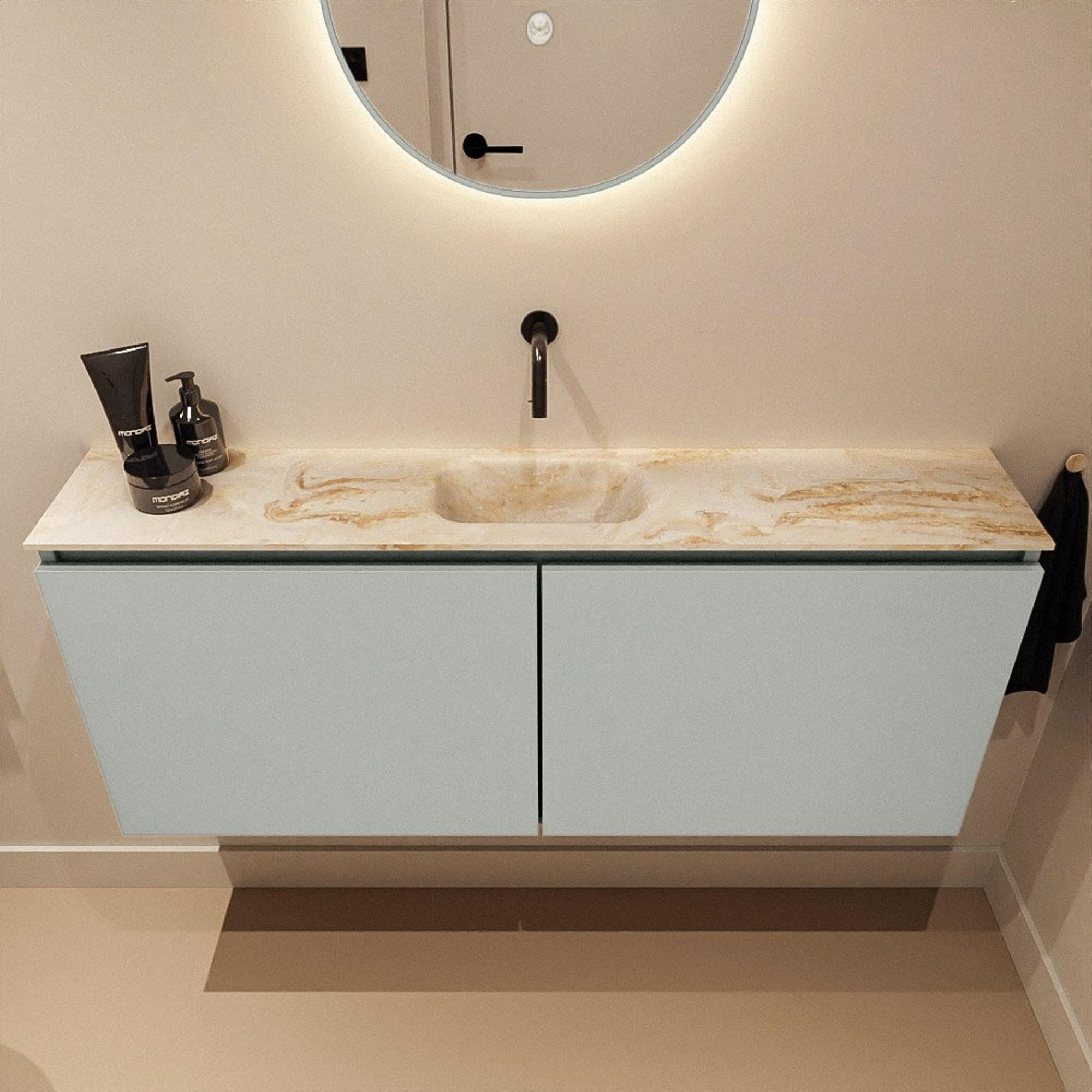 MONDIAZ TURE-DLUX Meuble WC 120 cm Greey. EDEN lavabo Frappe position milieu. Sans trou de robinet.