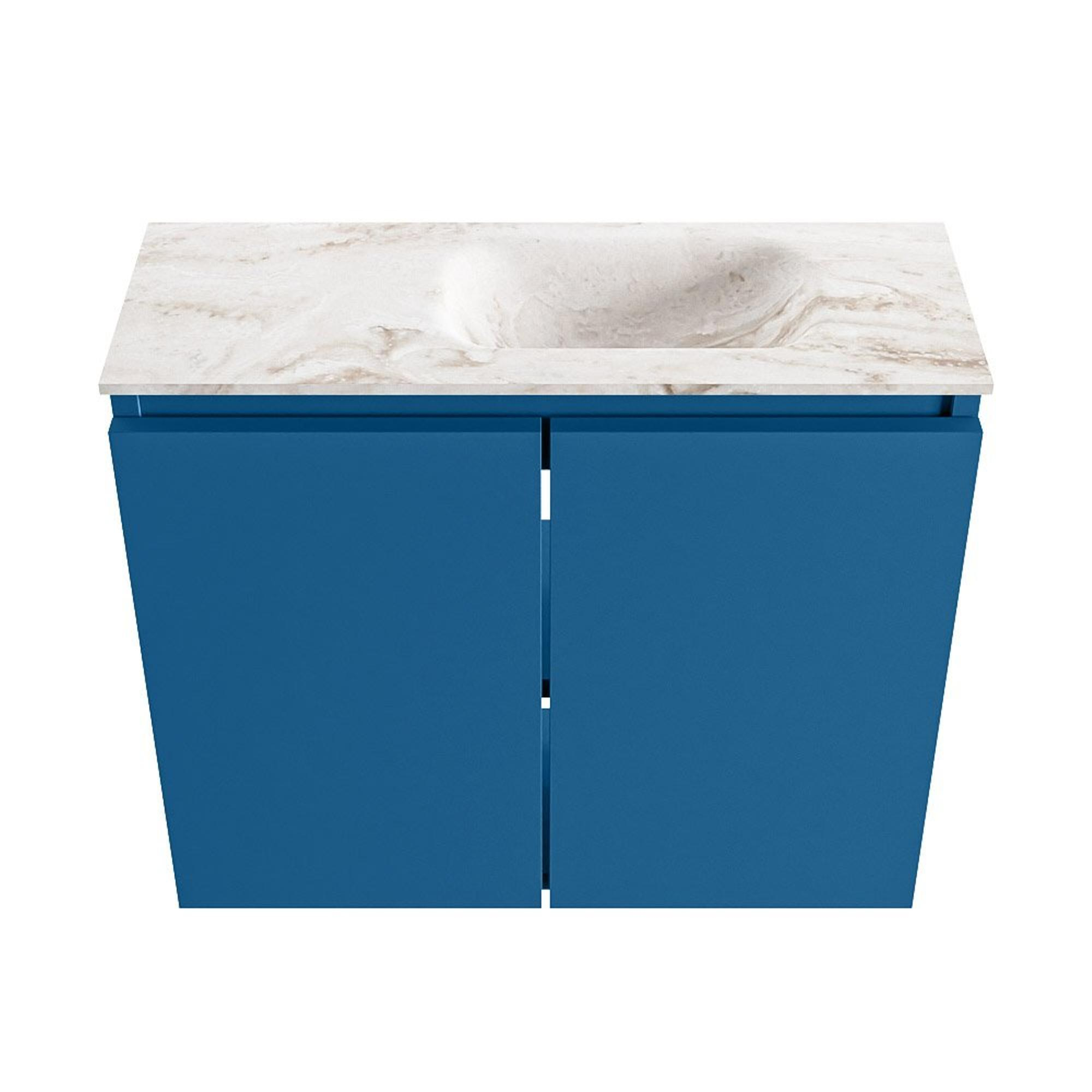 Vous recherchez un meuble élégant et compact pour donner une nouvelle allure à vos toilettes ou à votre petite salle de bains, sans qu’il prenne trop de place ? Alors ce meuble fin avec lavabo intégré est un choix judicieux. Grâce à sa faible profondeur, il s’intègre parfaitement dans un WC étroit ou une salle de bains compacte, tout en offrant un point d’eau complet avec suffisamment d’espace de rangement derrière les deux portes. La couleur bleue moderne apporte un aspect raffiné et contemporain et se marie harmonieusement avec la céramique blanche, les accents noirs ou les tons bois chaleureux. Le lavabo avec trou de robinet à droite est parfait si vous avez surtout besoin de liberté de mouvement de ce côté dans la pièce, par exemple le long d’une porte ou en face des toilettes. Vous créez ainsi une solution pratique, esthétique et bien pensée dans un espace restreint.