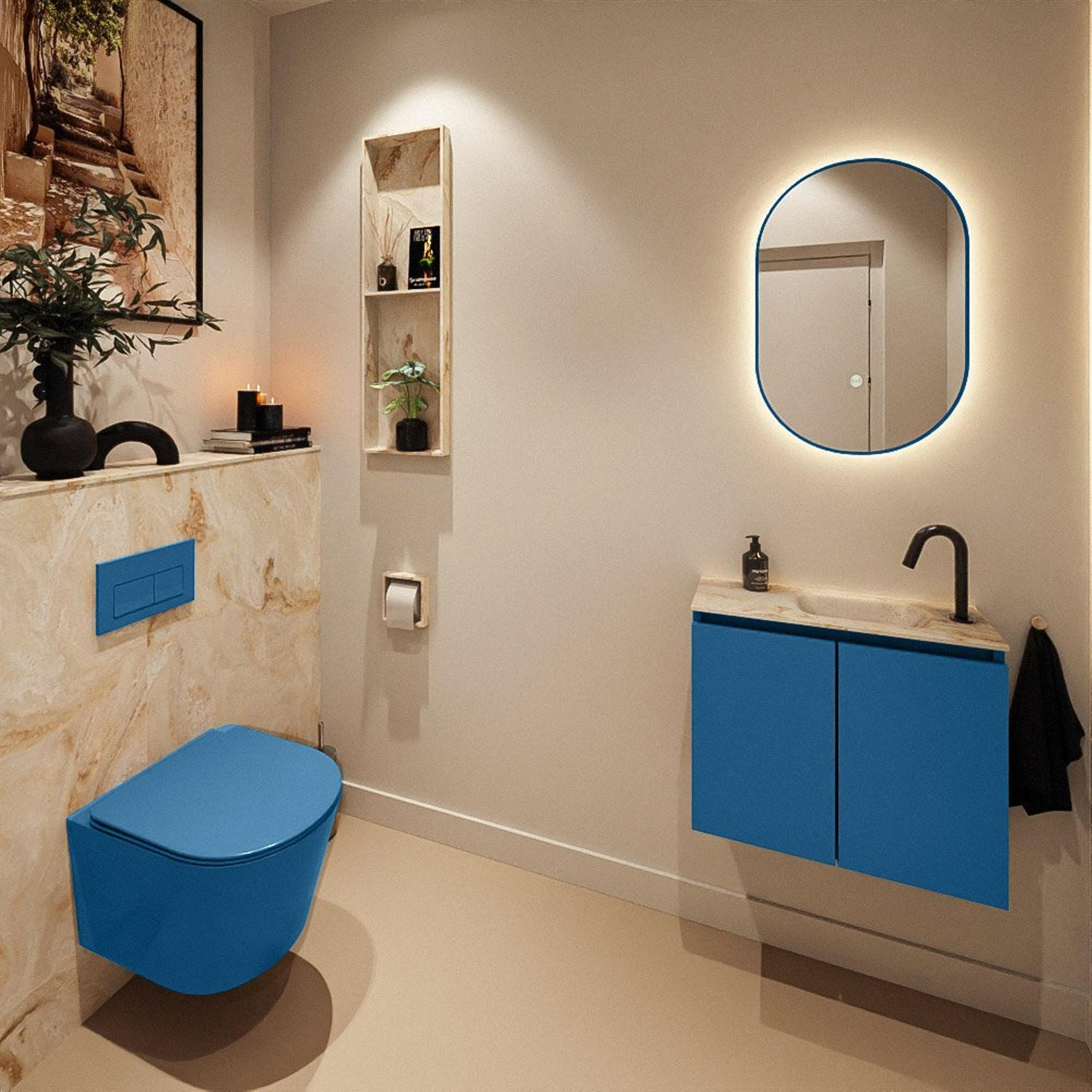 MONDIAZ TURE-DLUX Meuble de toilettes 60cm Jeans. EDEN lavabo Frappe position droite. Avec 1 trou de robinet.