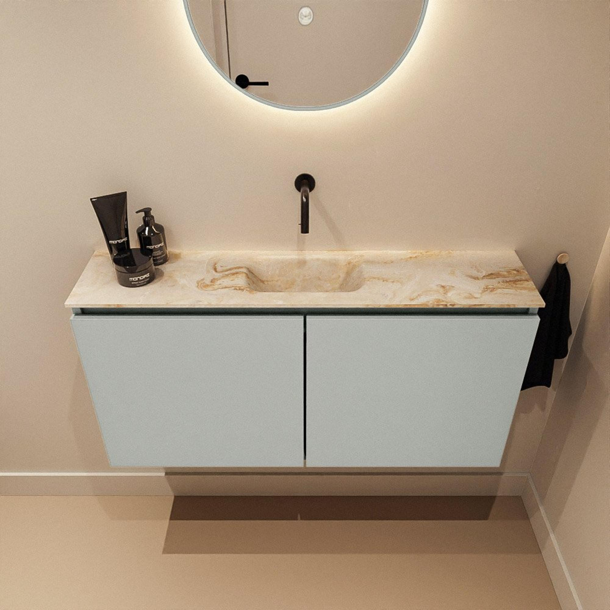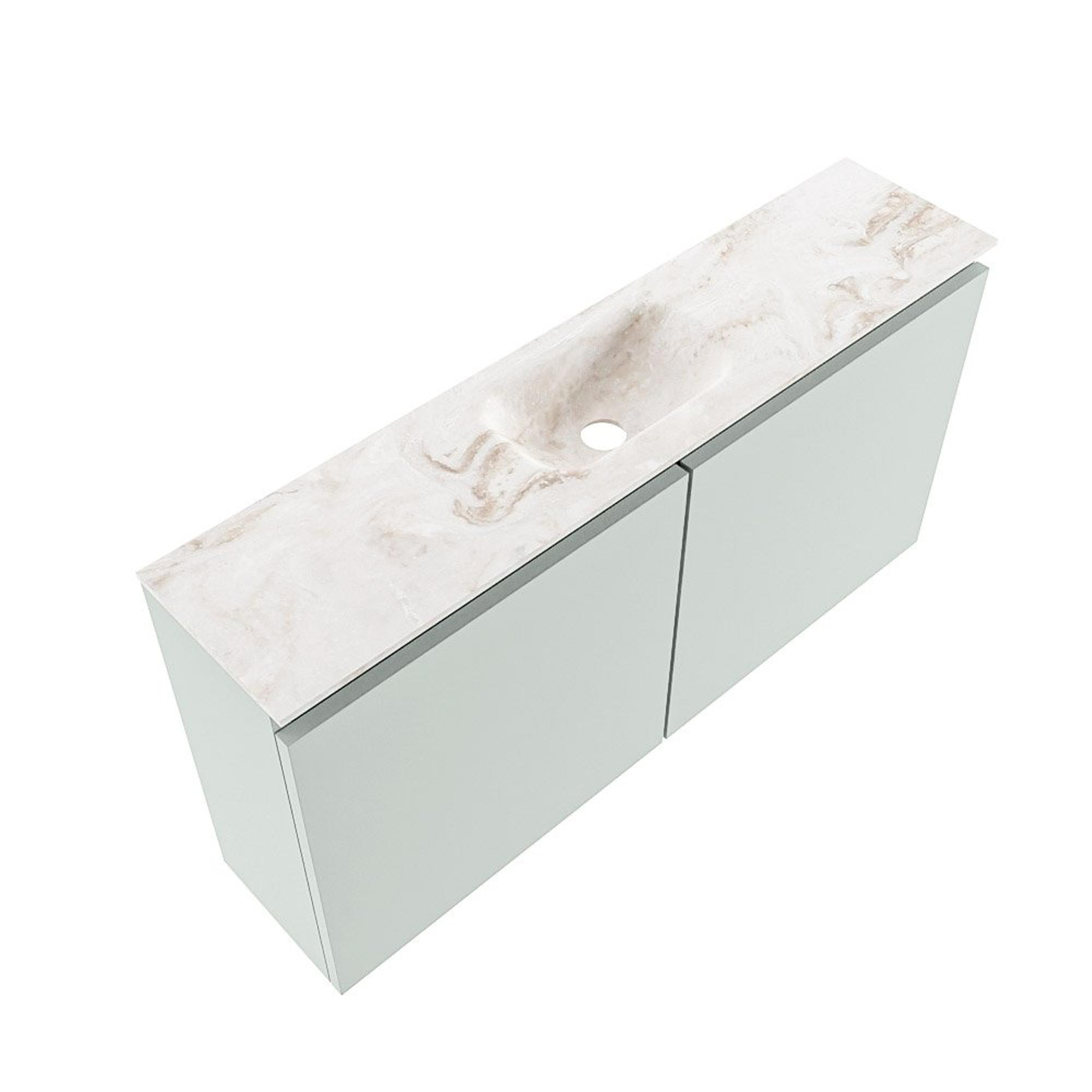 MONDIAZ TURE-DLUX Meuble de toilettes 100 cm Greey. Lavabo EDEN Frappe position milieu. Sans trou de robinet.