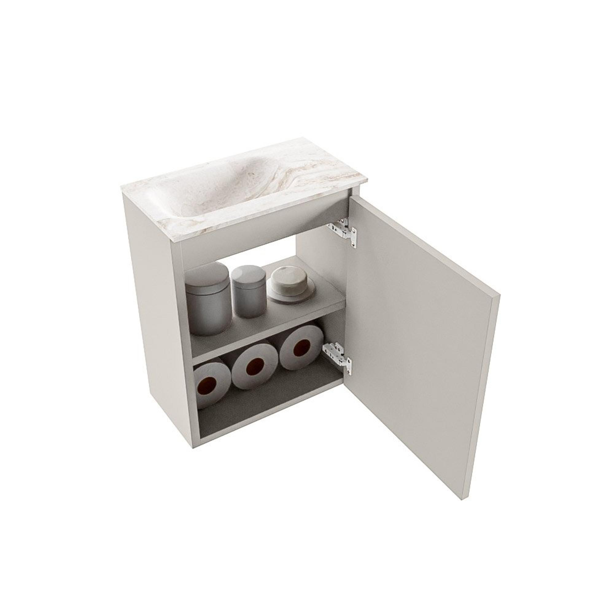 MONDIAZ TURE-DLUX Meuble WC 40 cm Linen. EDEN lavabo Frappe position gauche. Avec 1 trou de robinet.