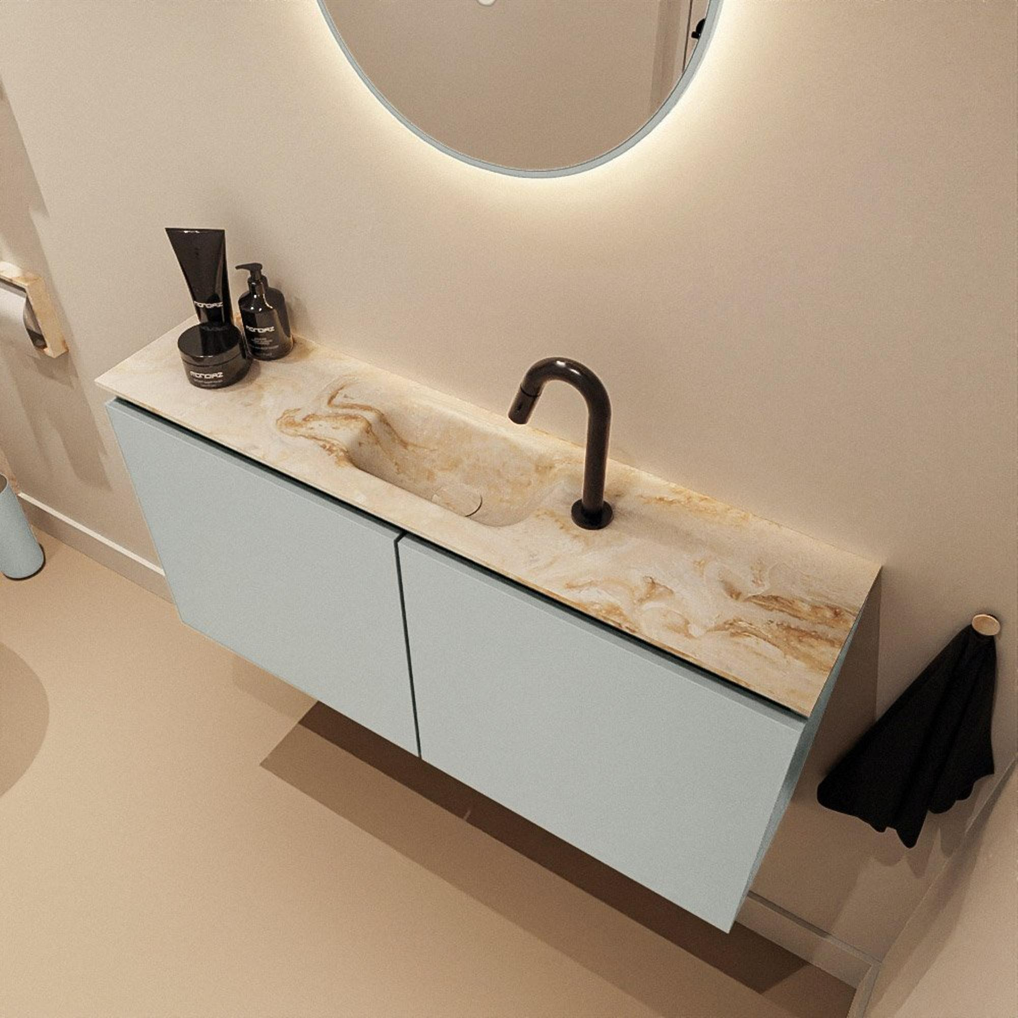 MONDIAZ TURE-DLUX Meuble de toilettes 100 cm Greey. EDEN lavabo Frappe position milieu. Avec 1 trou de robinet.