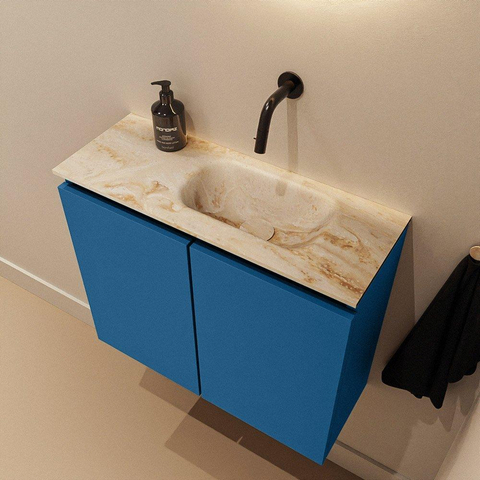 MONDIAZ TURE-DLUX meuble de toilette 60cm Jeans. EDEN lavabo Frappe position droite. Sans trou de robinet.