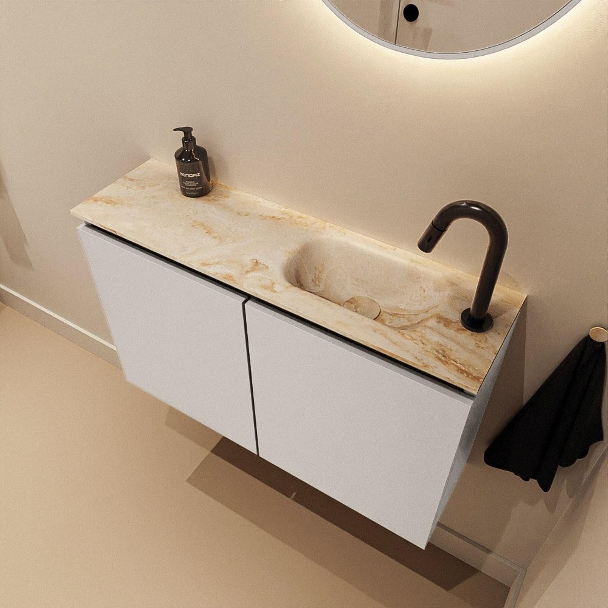 MONDIAZ TURE-DLUX Meuble WC 80 cm Linen. EDEN lavabo Frappe position droite. Avec 1 trou de robinet.