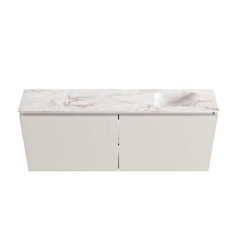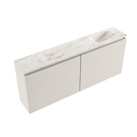 MONDIAZ TURE-DLUX Meuble de toilettes 120 cm Linen. Lavabo EDEN Frappe position droite. Sans trou de robinet.