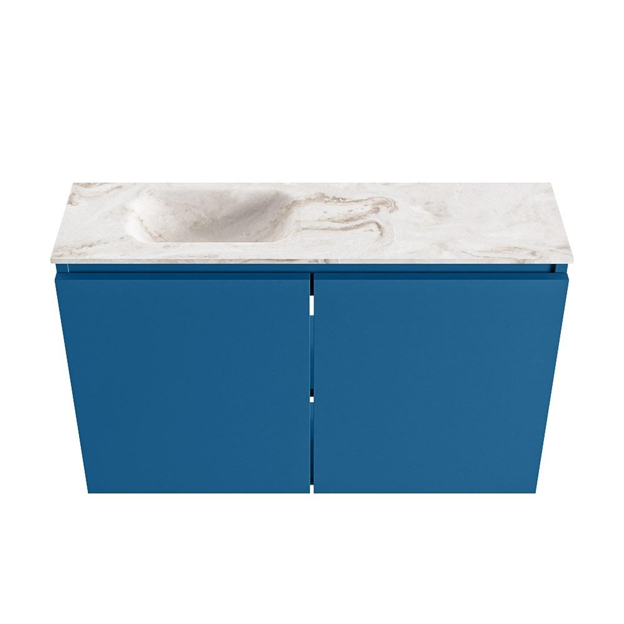 MONDIAZ TURE-DLUX Meuble de toilettes 80 cm Jeans. EDEN lavabo Frappe position gauche. Avec 1 trou de robinet.
