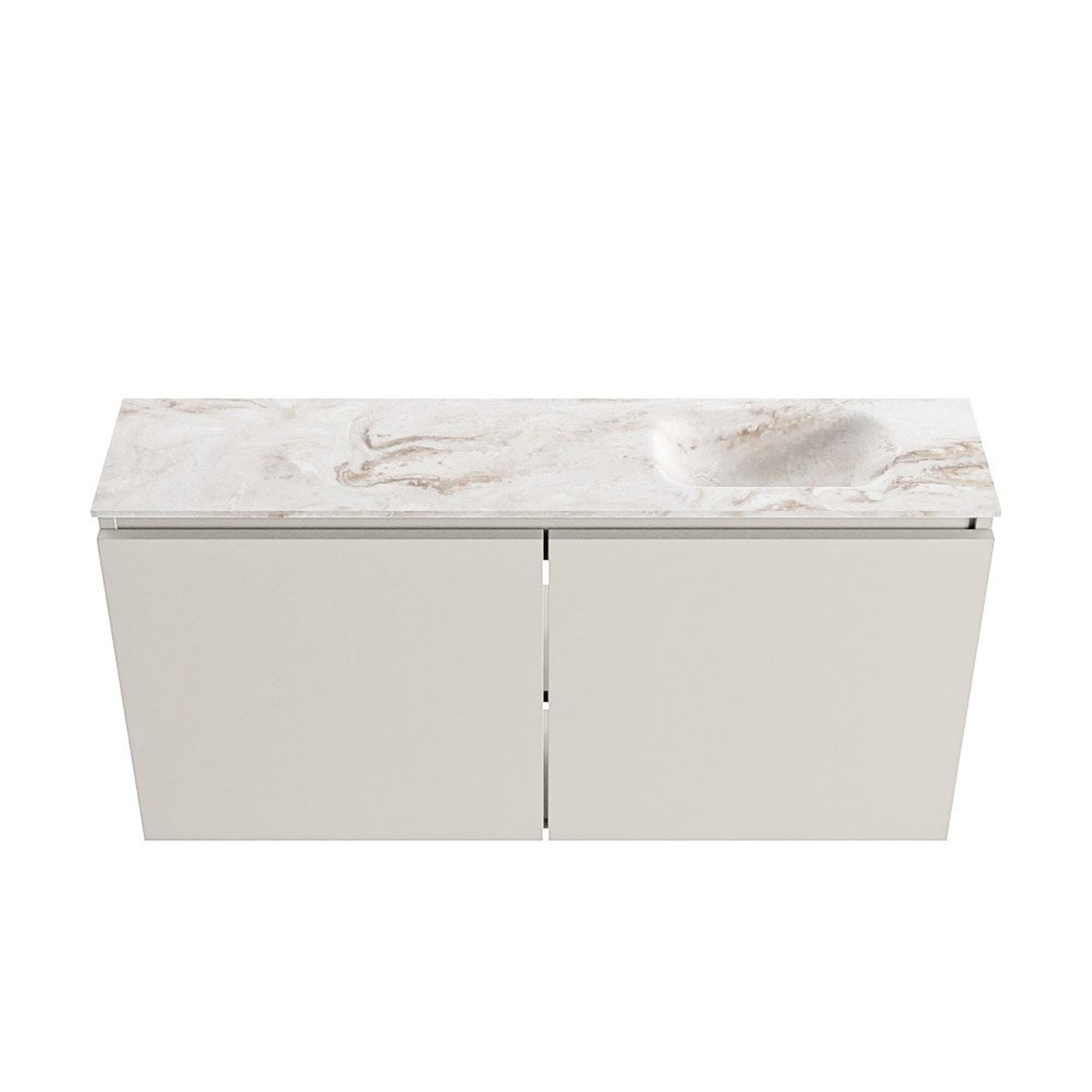 MONDIAZ TURE-DLUX Meuble de WC 100 cm Linen. EDEN lavabo Frappe position droite. Avec 1 trou de robinet.