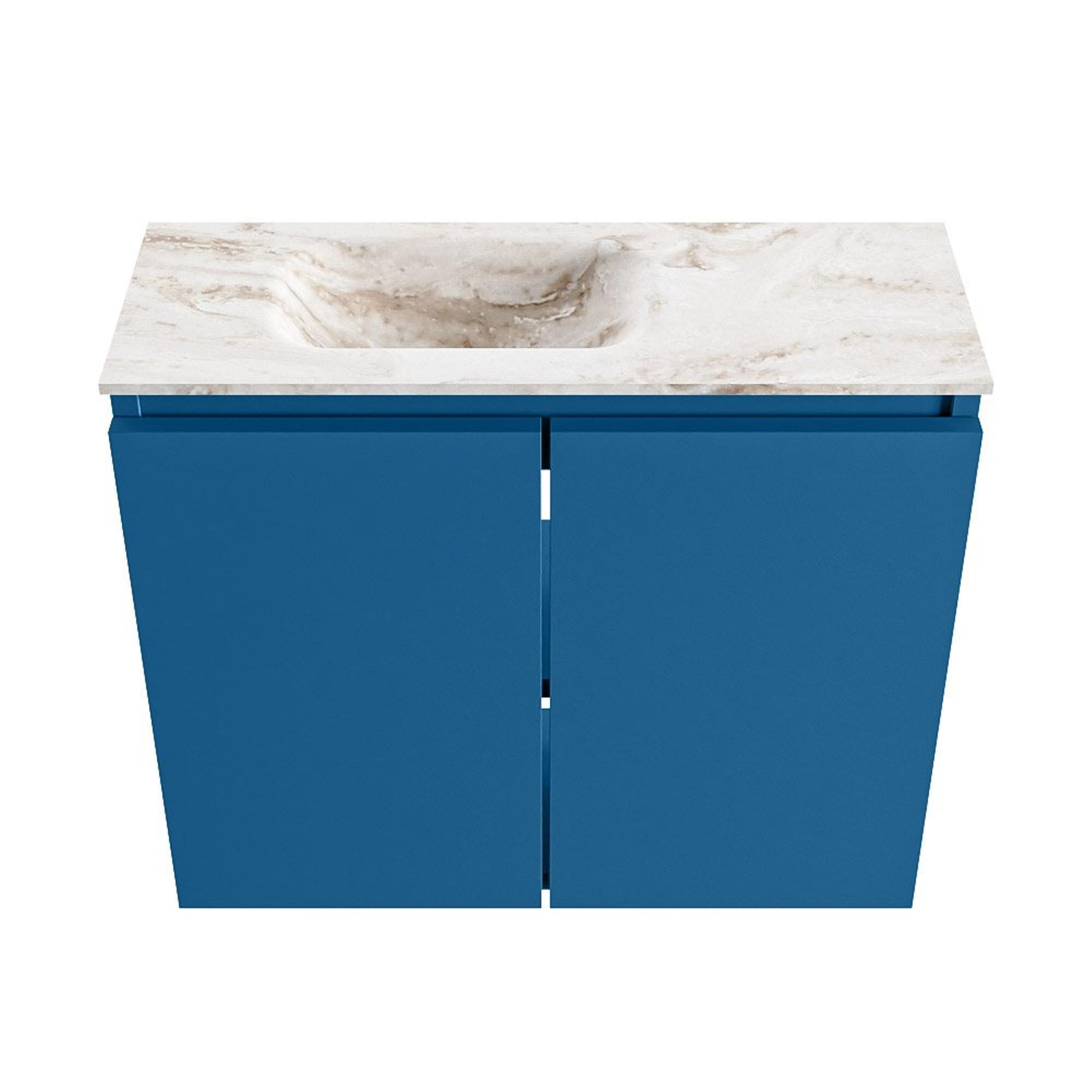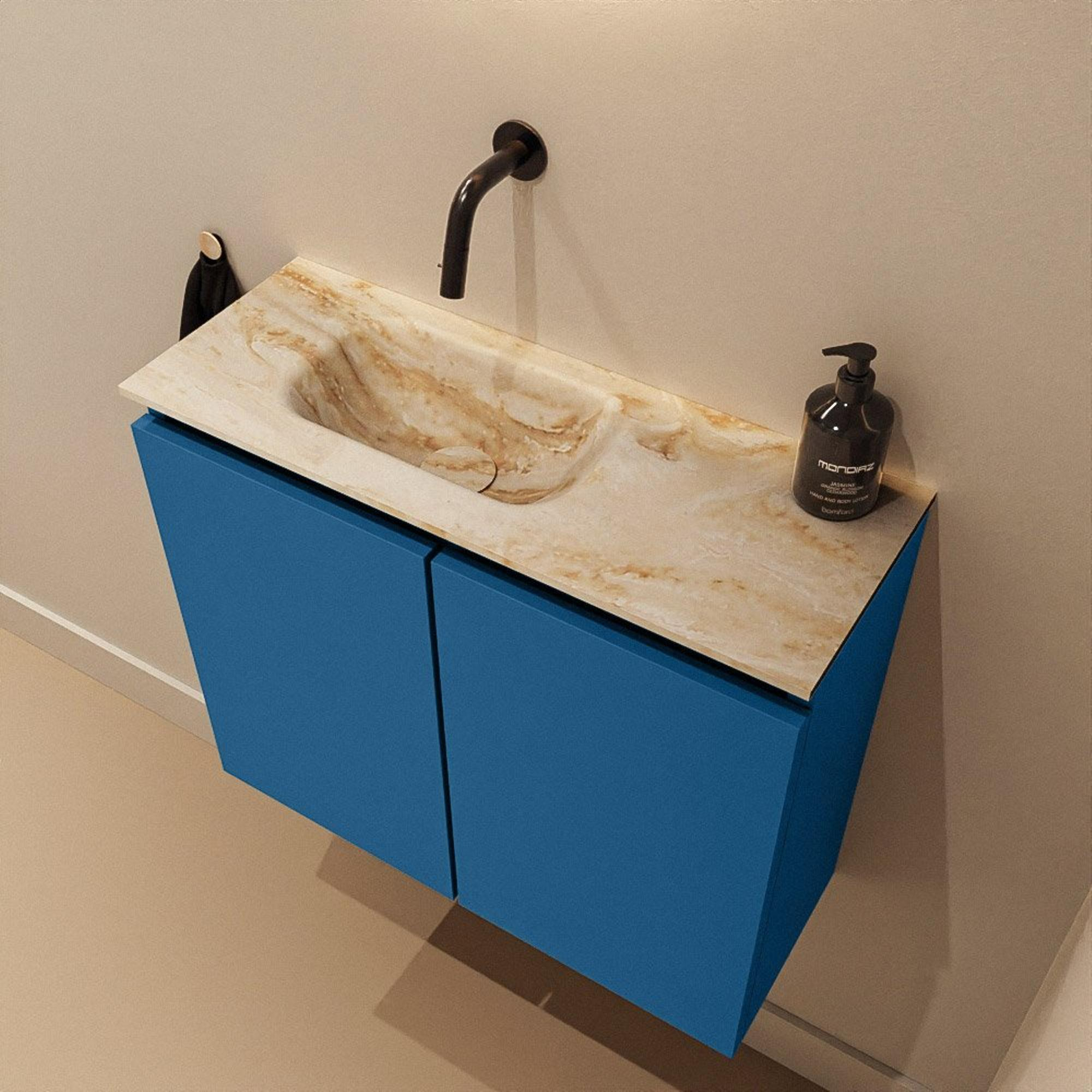 MONDIAZ TURE-DLUX Meuble de toilettes 60 cm Jeans. EDEN lavabo Frappe position gauche. Sans trou de robinet.