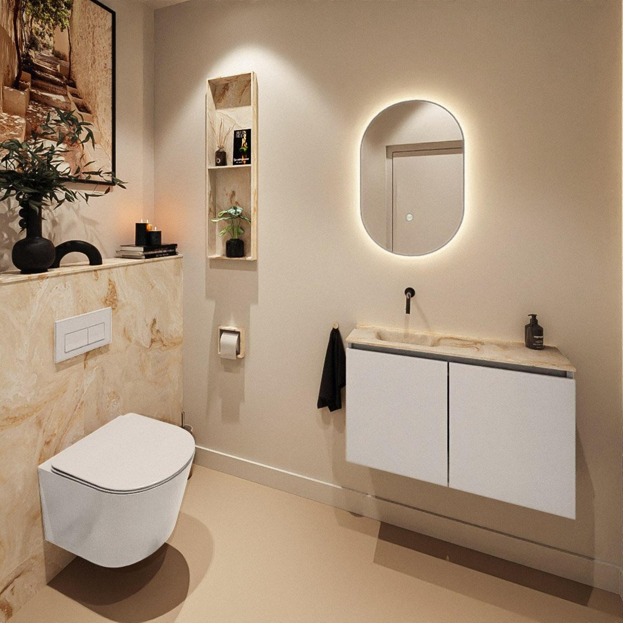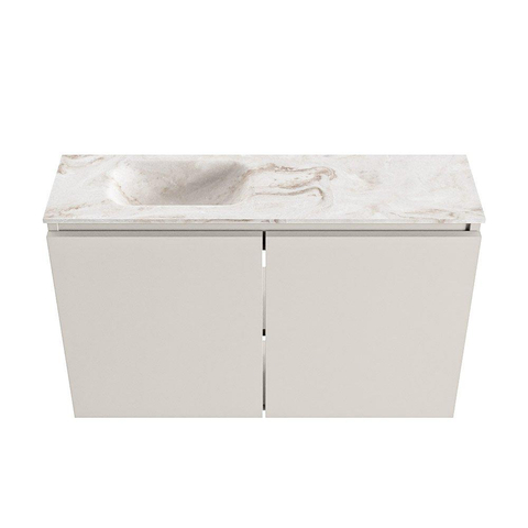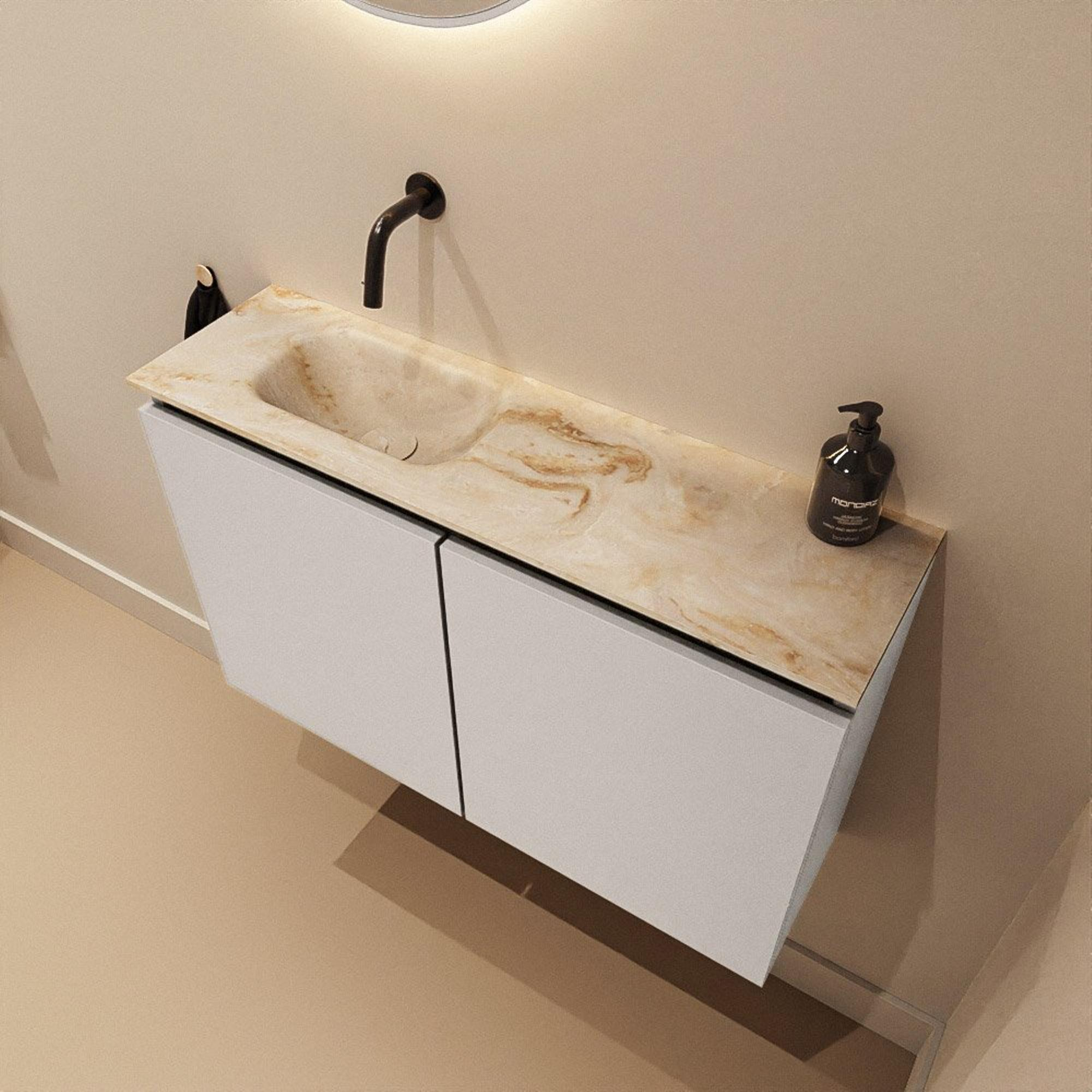 MONDIAZ TURE-DLUX Meuble de toilettes 80 cm Linen. EDEN lavabo Frappe position gauche. Sans trou de robinet.