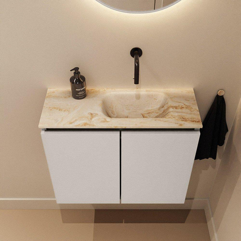MONDIAZ TURE-DLUX Meuble de toilette 60 cm Linen. EDEN lavabo Frappe position droite. Sans trou de robinet.