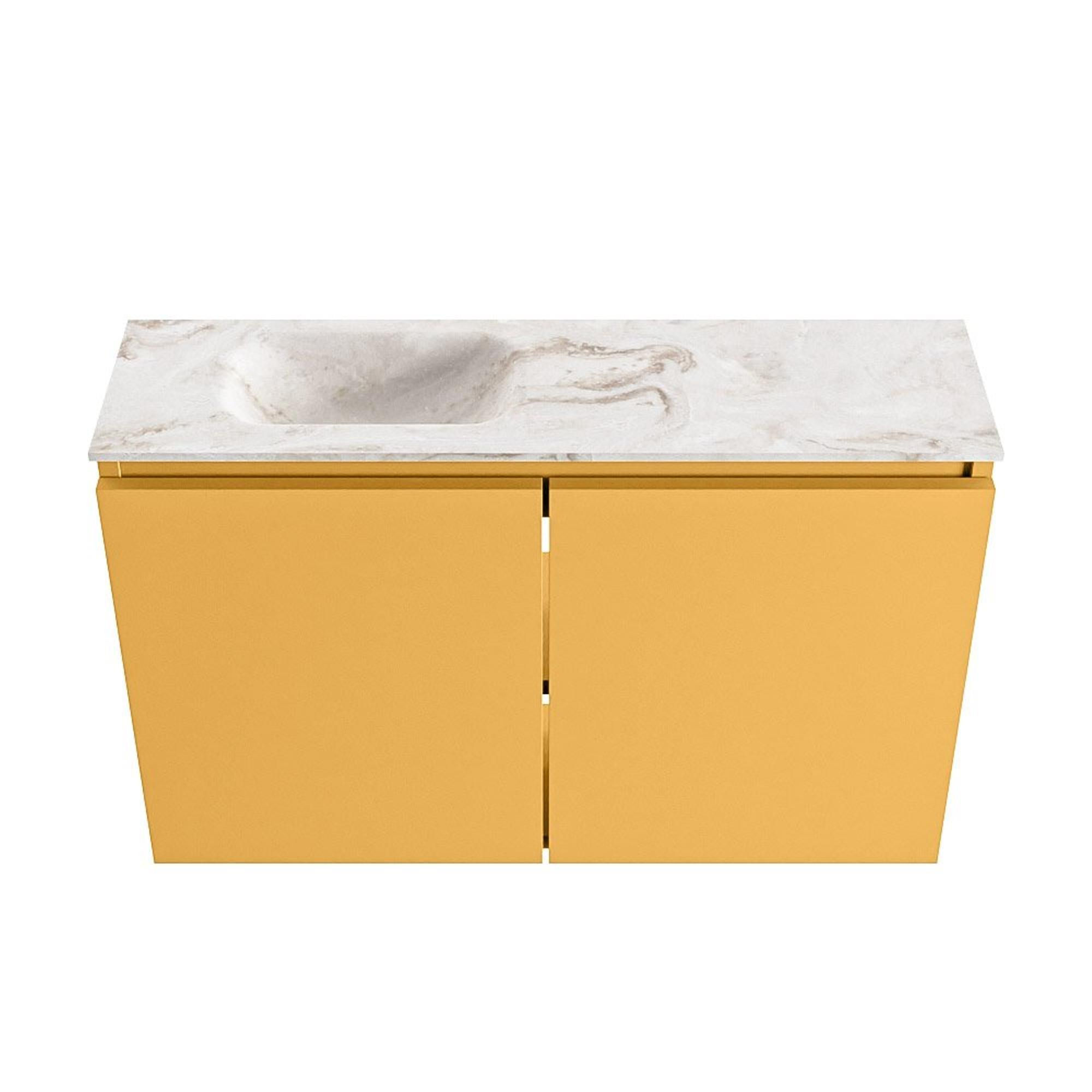 MONDIAZ TURE-DLUX meuble WC 80cm Ocher. EDEN lavabo Frappe position gauche. Avec 1 trou de robinet.