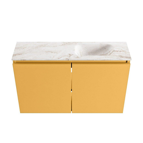 MONDIAZ TURE-DLUX Meuble de toilette 80cm Ocher. EDEN lavabo Frappe position droite. Avec 1 trou de robinet.