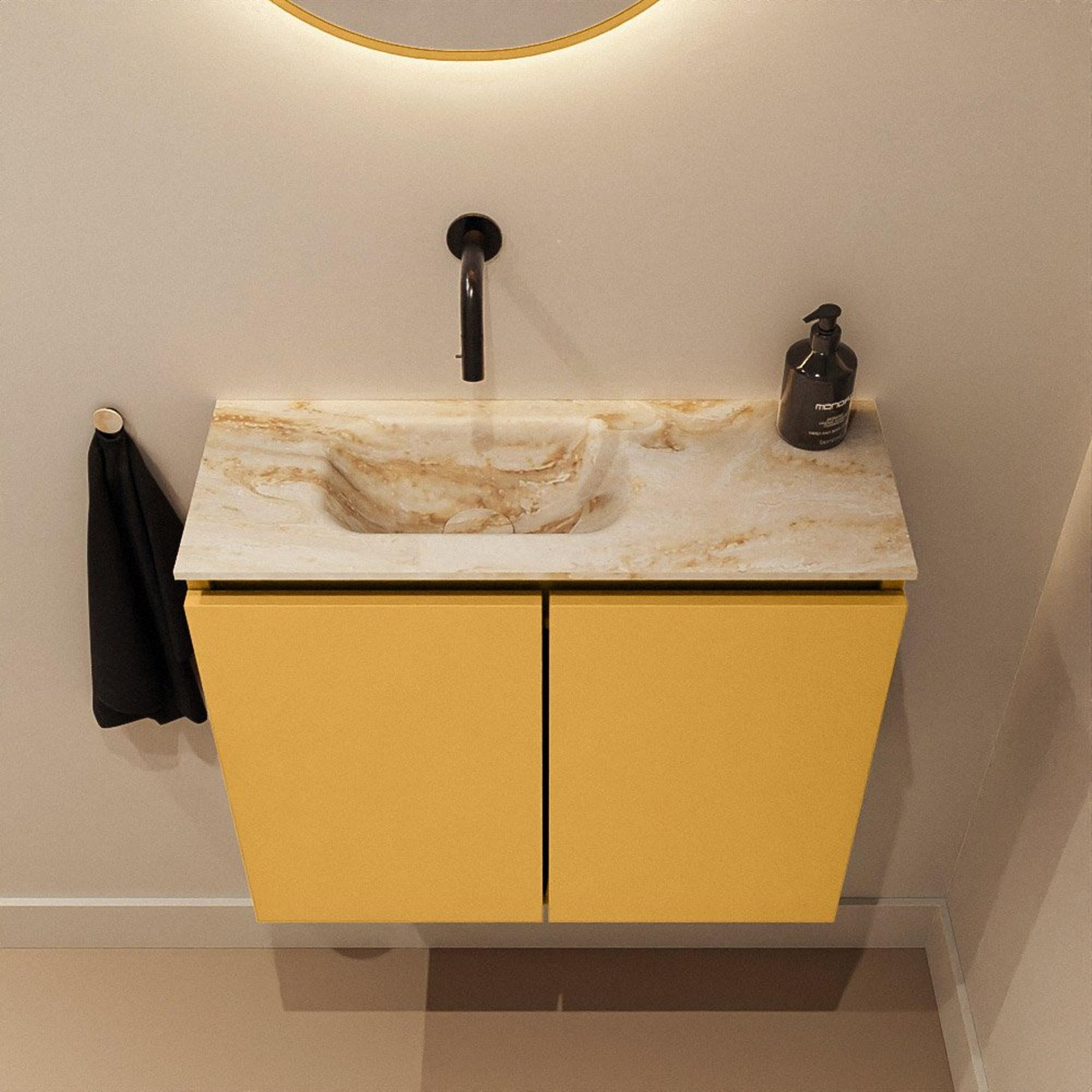 MONDIAZ TURE-DLUX meuble de toilettes 60 cm Ocher. Lavabo EDEN Frappe position gauche. Sans trou de robinet.