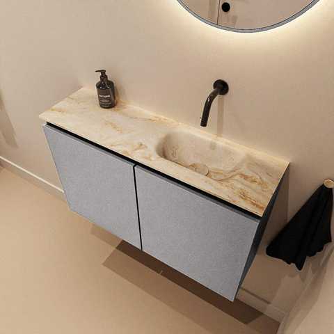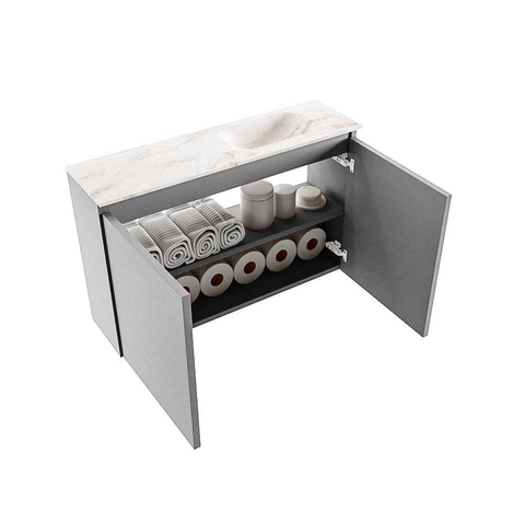 MONDIAZ TURE-DLUX Meuble WC 80 cm Plata. EDEN lavabo Frappe position droite. Sans trou de robinet.