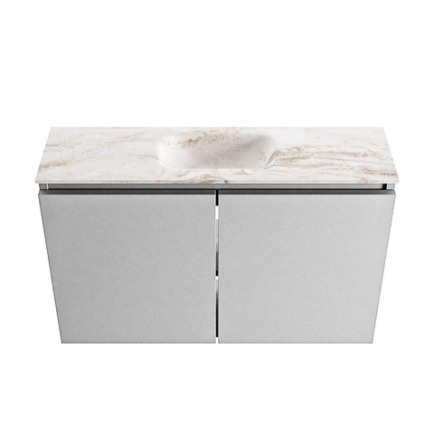 MONDIAZ TURE-DLUX Meuble toilettes 80 cm Plata. EDEN lavabo Frappe position centrale. Sans trou de robinet.