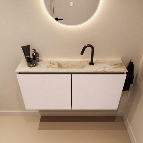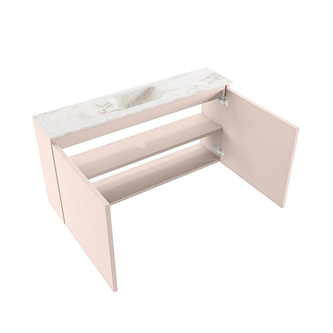 MONDIAZ TURE-DLUX Meuble WC 100 cm Rosee. EDEN lavabo Frappe position milieu. Avec 1 trou de robinet.