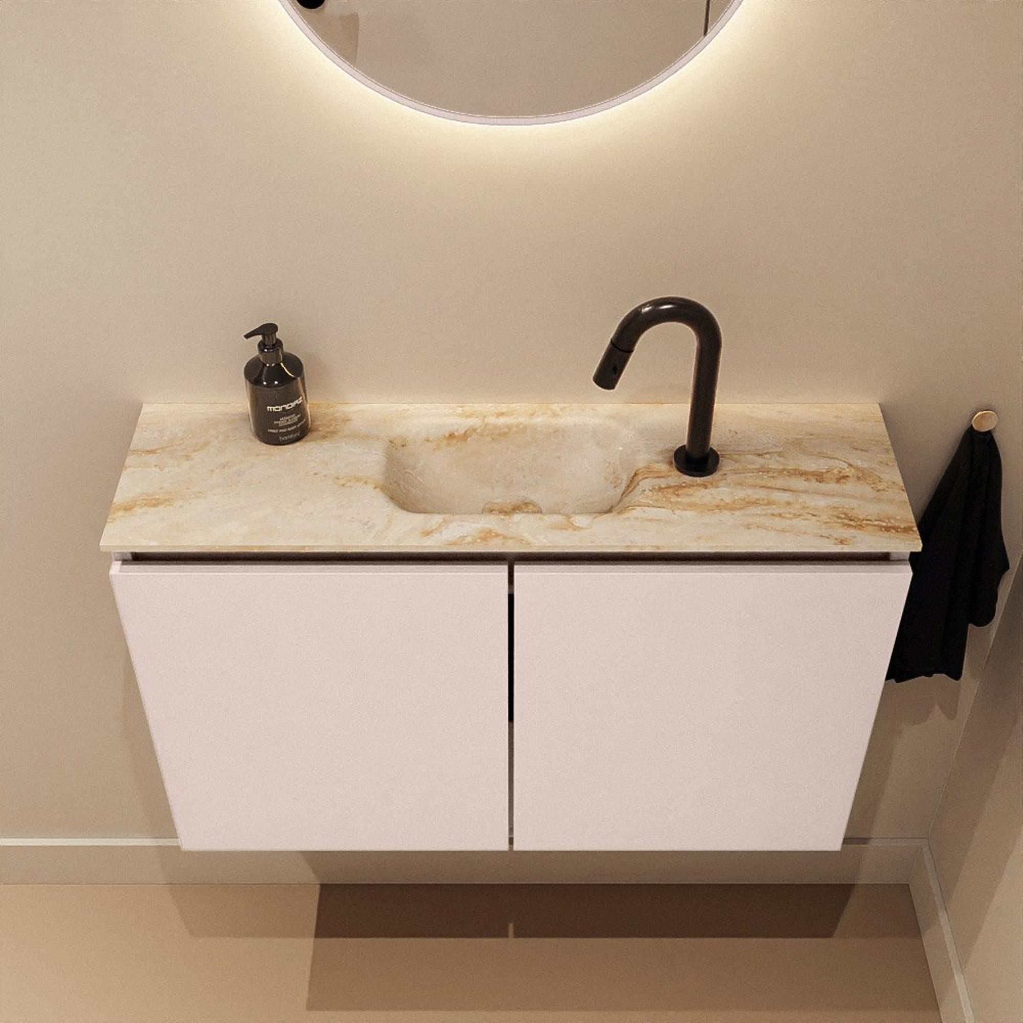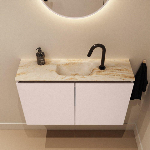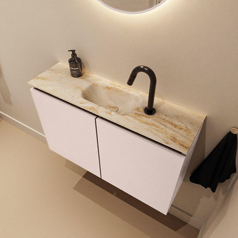 MONDIAZ TURE-DLUX Meuble de toilette 80cm Rosee. EDEN lavabo Frappe position milieu. Avec 1 trou de robinet.