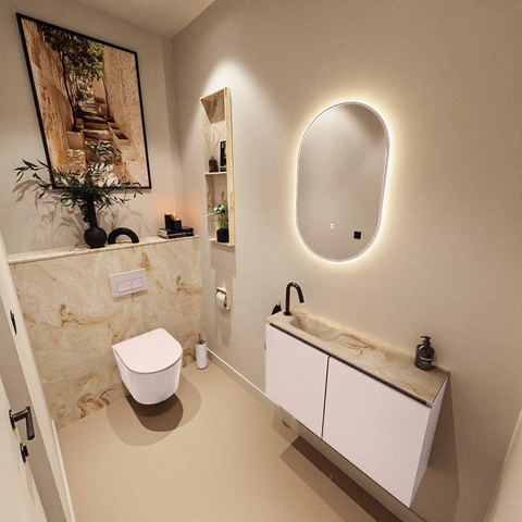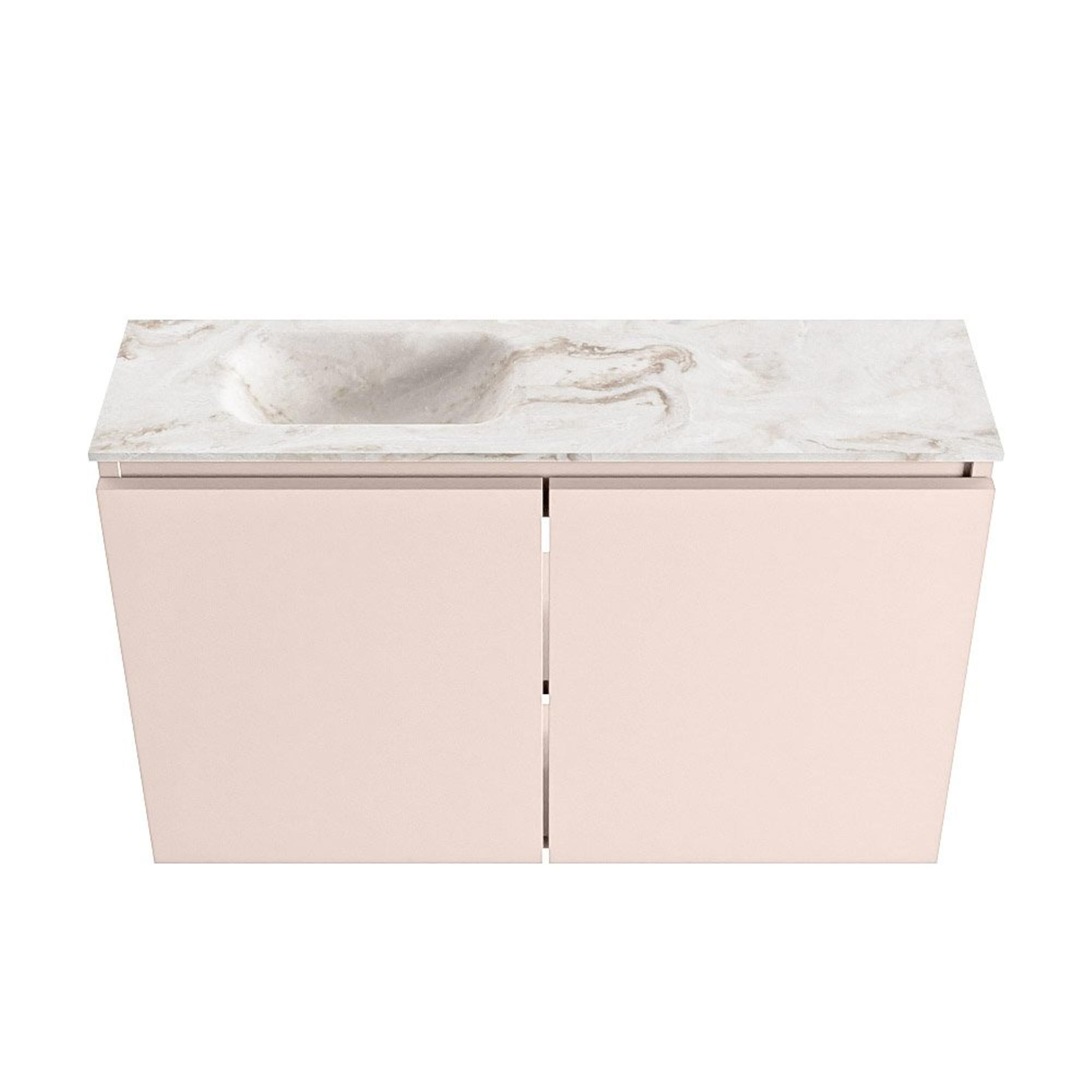 MONDIAZ TURE-DLUX meuble de toilettes 80 cm Rosee. EDEN lavabo Frappe position gauche. Avec 1 trou de robinet.