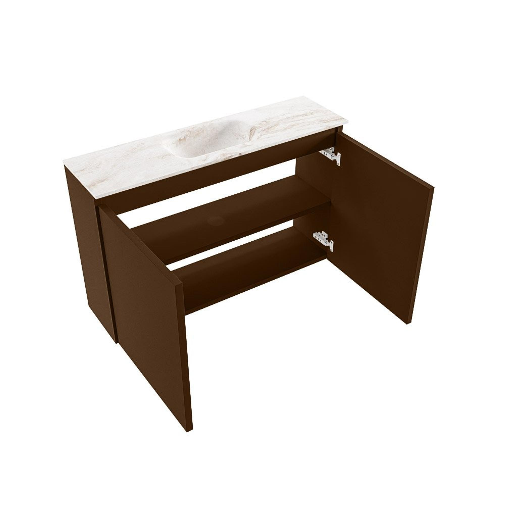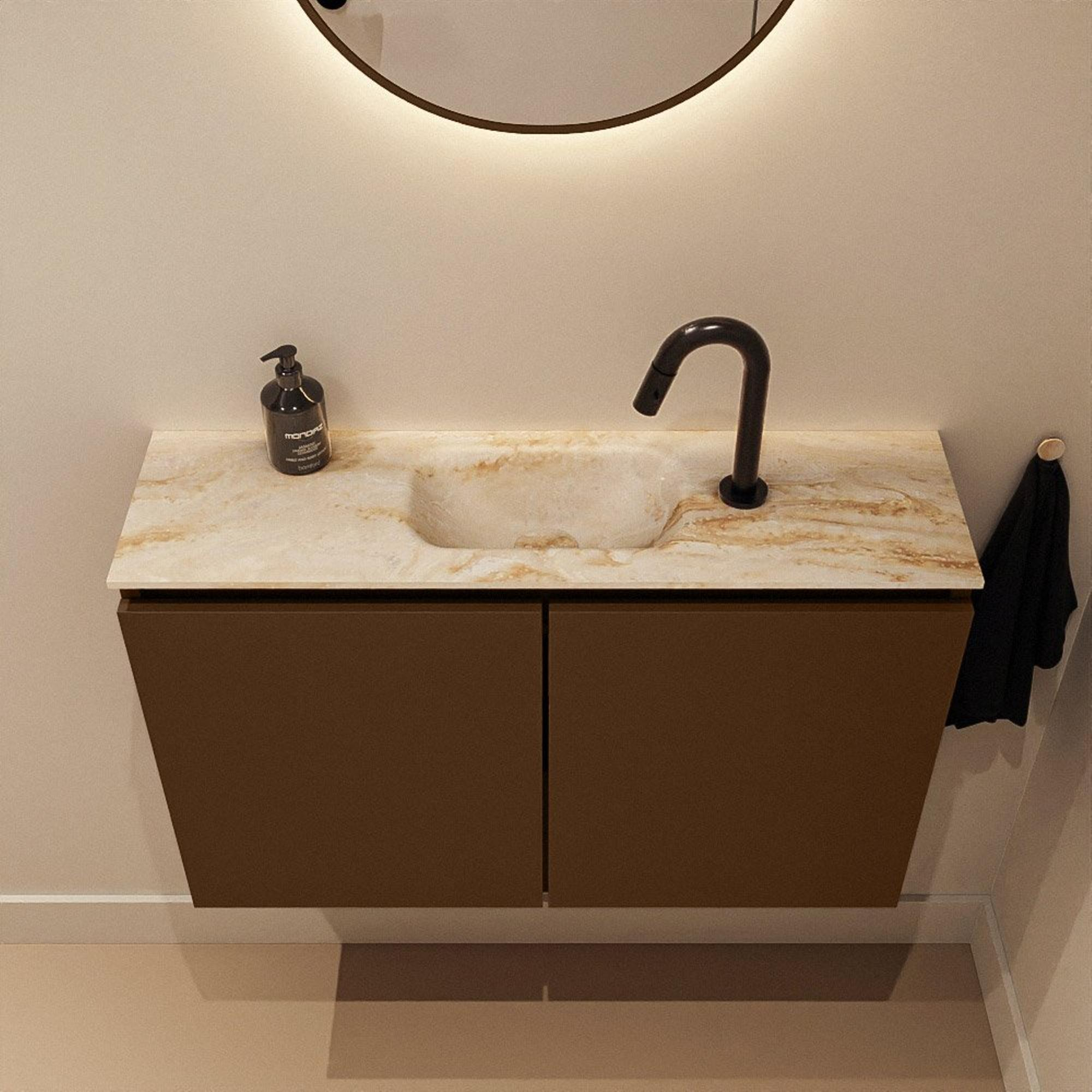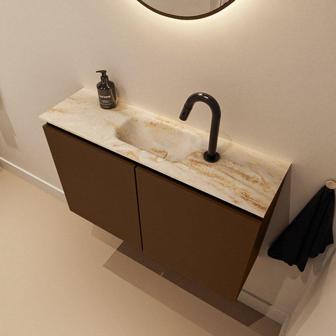MONDIAZ TURE-DLUX Meuble de toilettes 80 cm Rust. EDEN lavabo Frappe position milieu. Avec 1 trou de robinet.
