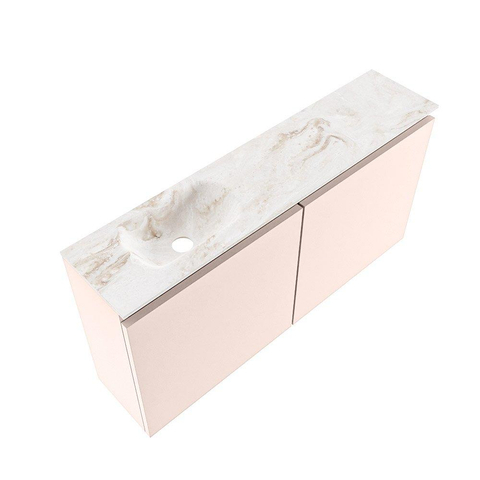 MONDIAZ TURE-DLUX Meuble de WC 100 cm Rosee. EDEN lavabo Frappe position gauche. Avec 1 trou de robinet.