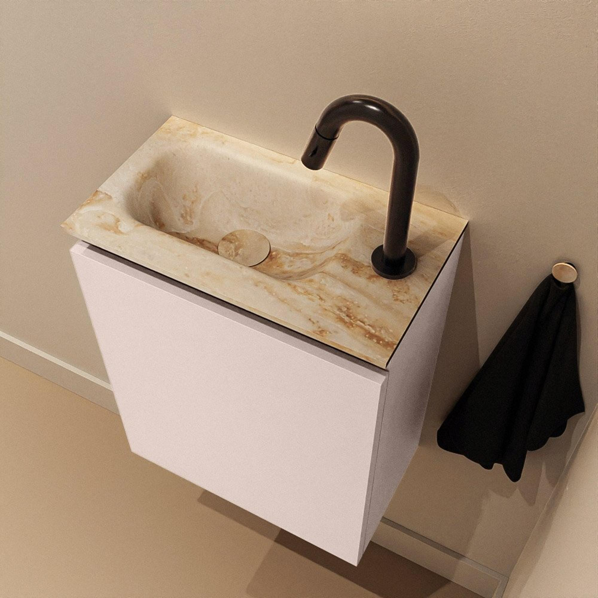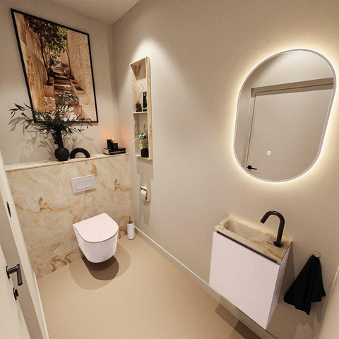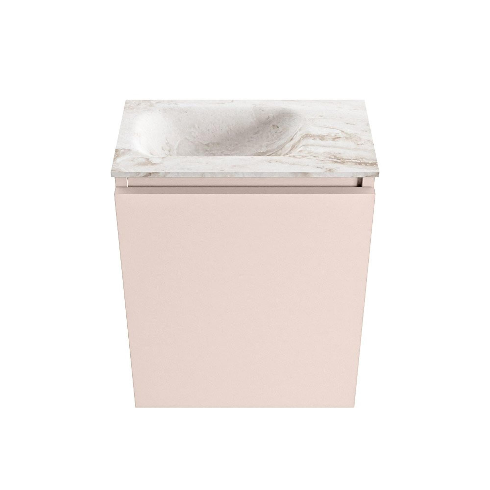 MONDIAZ TURE-DLUX meuble WC 40 cm Rosee. EDEN lavabo Frappe position gauche. Avec 1 trou de robinet.