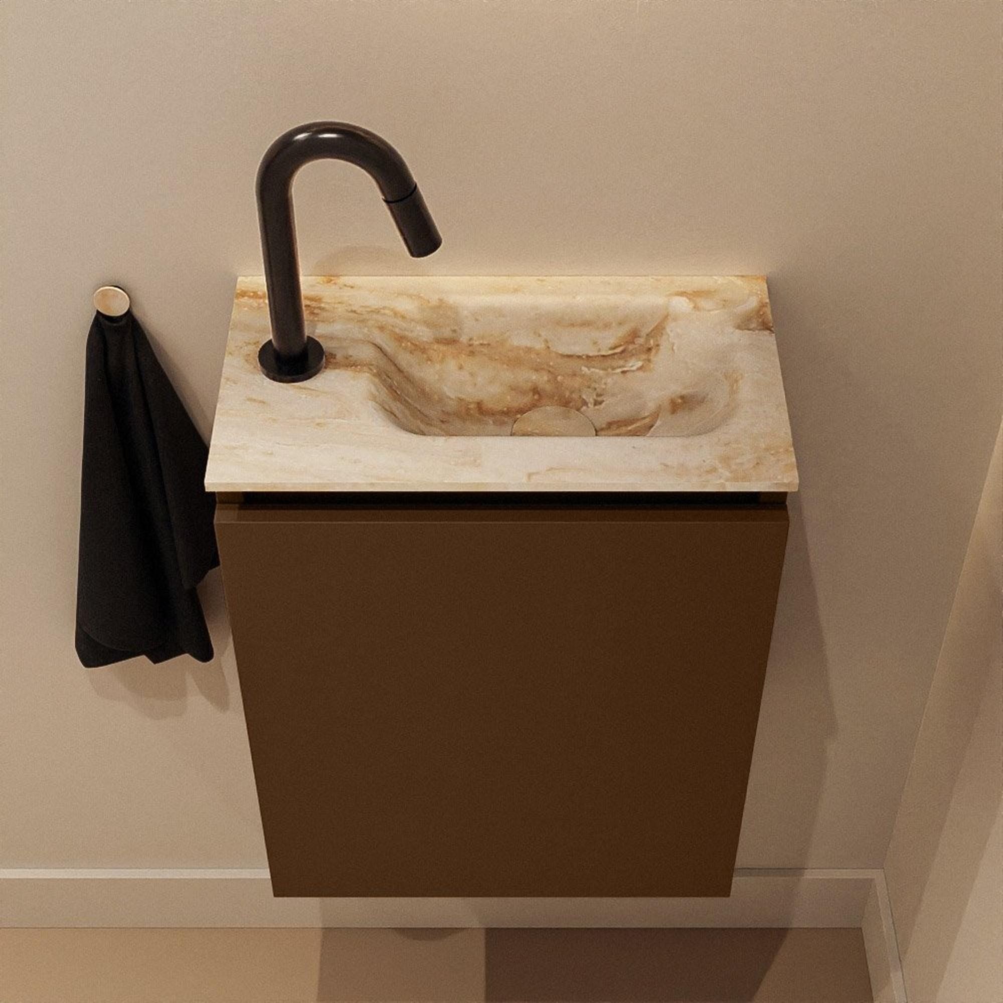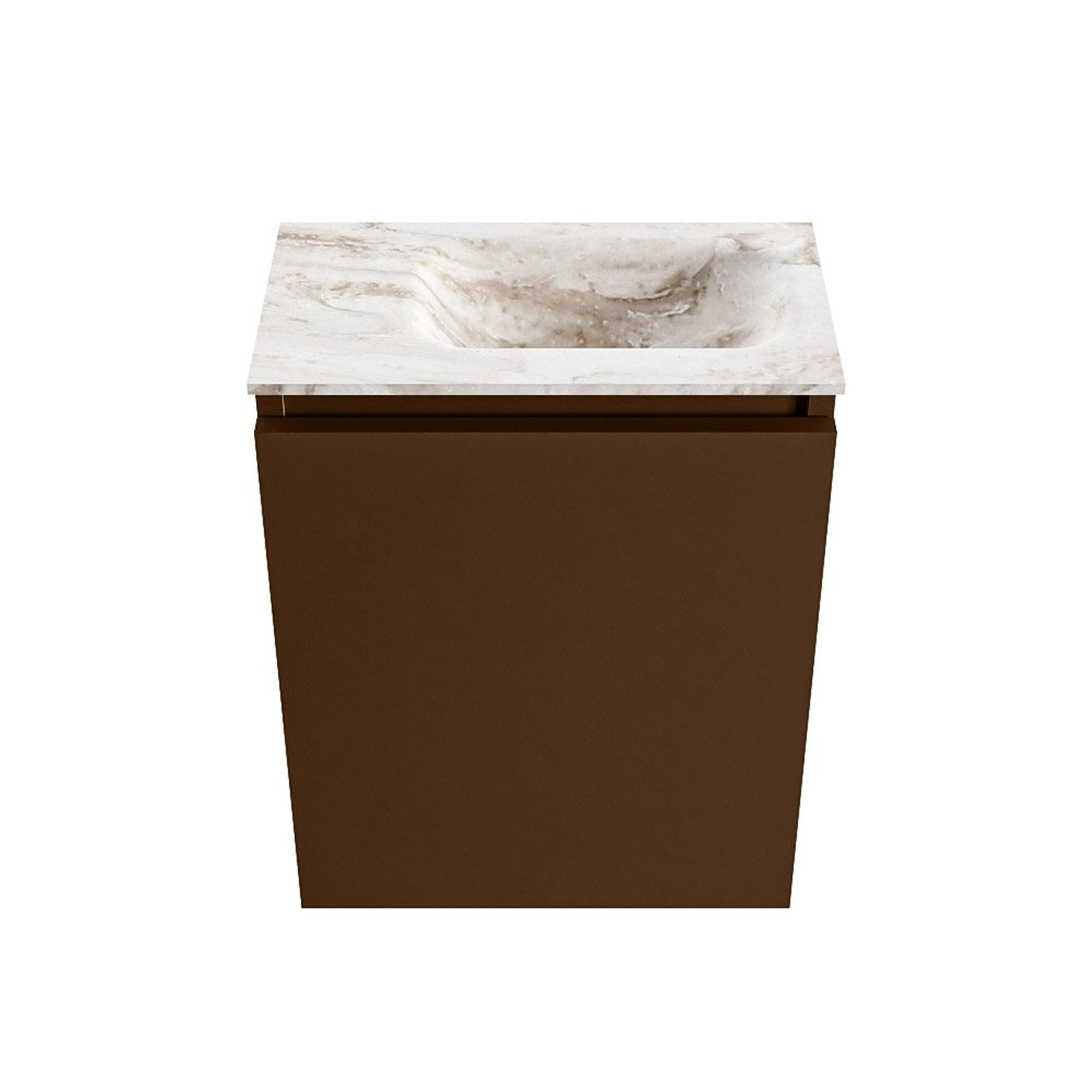 MONDIAZ TURE-DLUX meuble WC 40 cm Rust. EDEN lavabo Frappe position droite. Avec 1 trou de robinet.