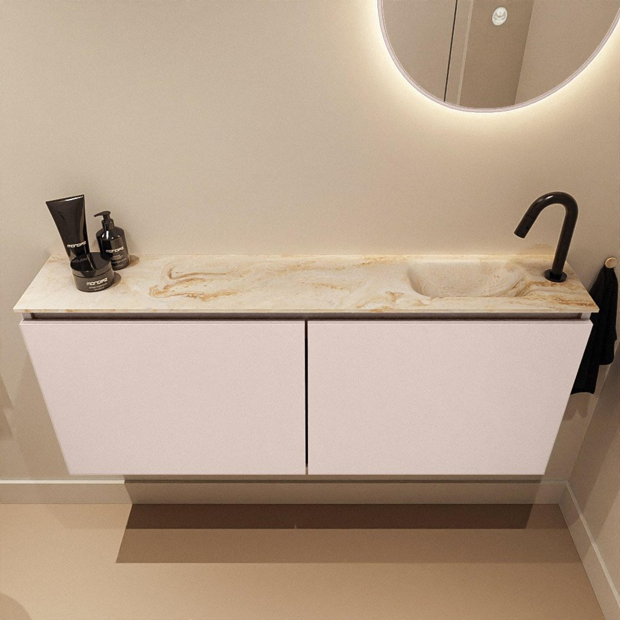 MONDIAZ TURE-DLUX Meuble de WC 120 cm Rosee. EDEN lavabo Frappe position droite. Avec 1 trou de robinet.