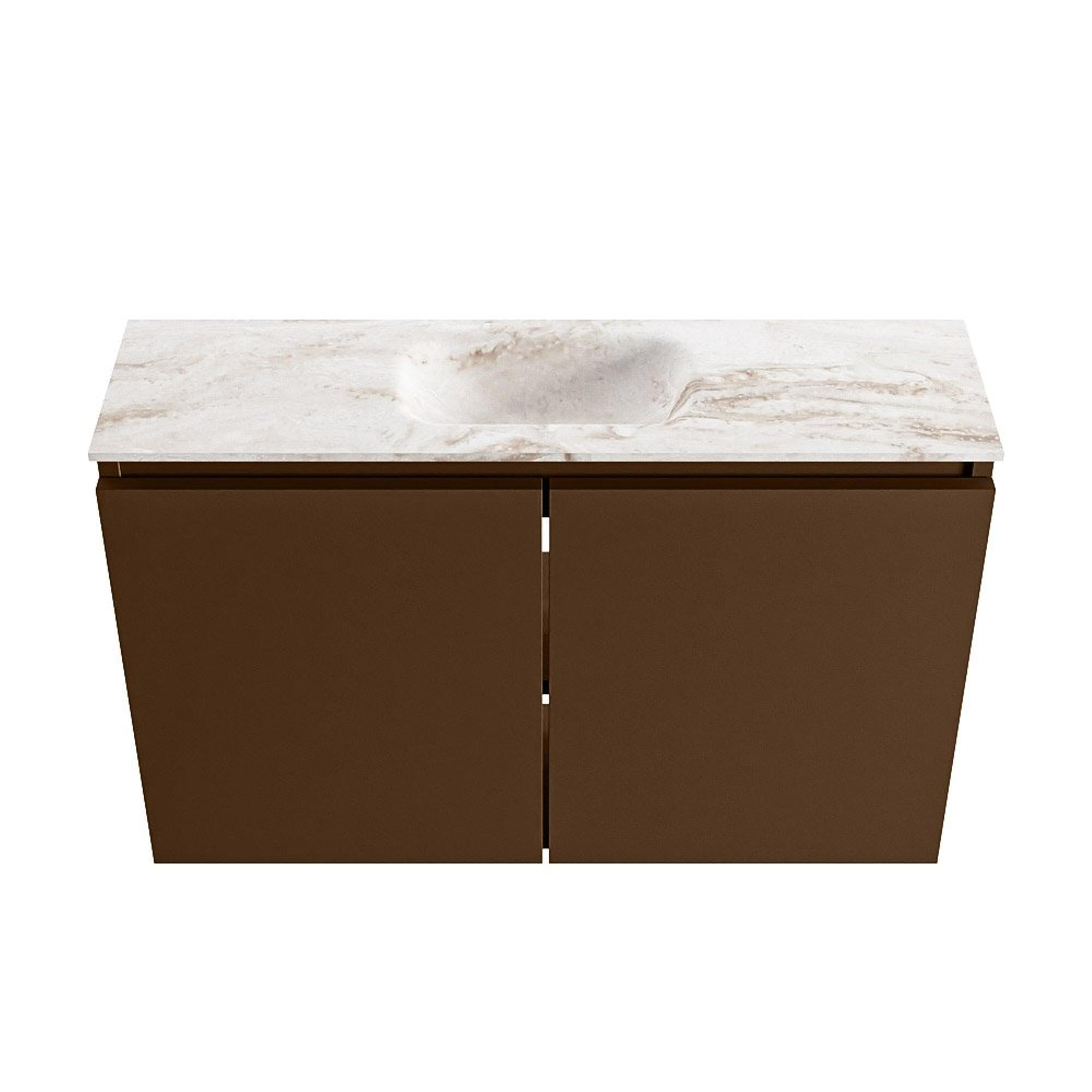 MONDIAZ TURE-DLUX Meuble de toilettes 80cm Rust. EDEN lavabo Frappe position milieu. Sans trou de robinet.