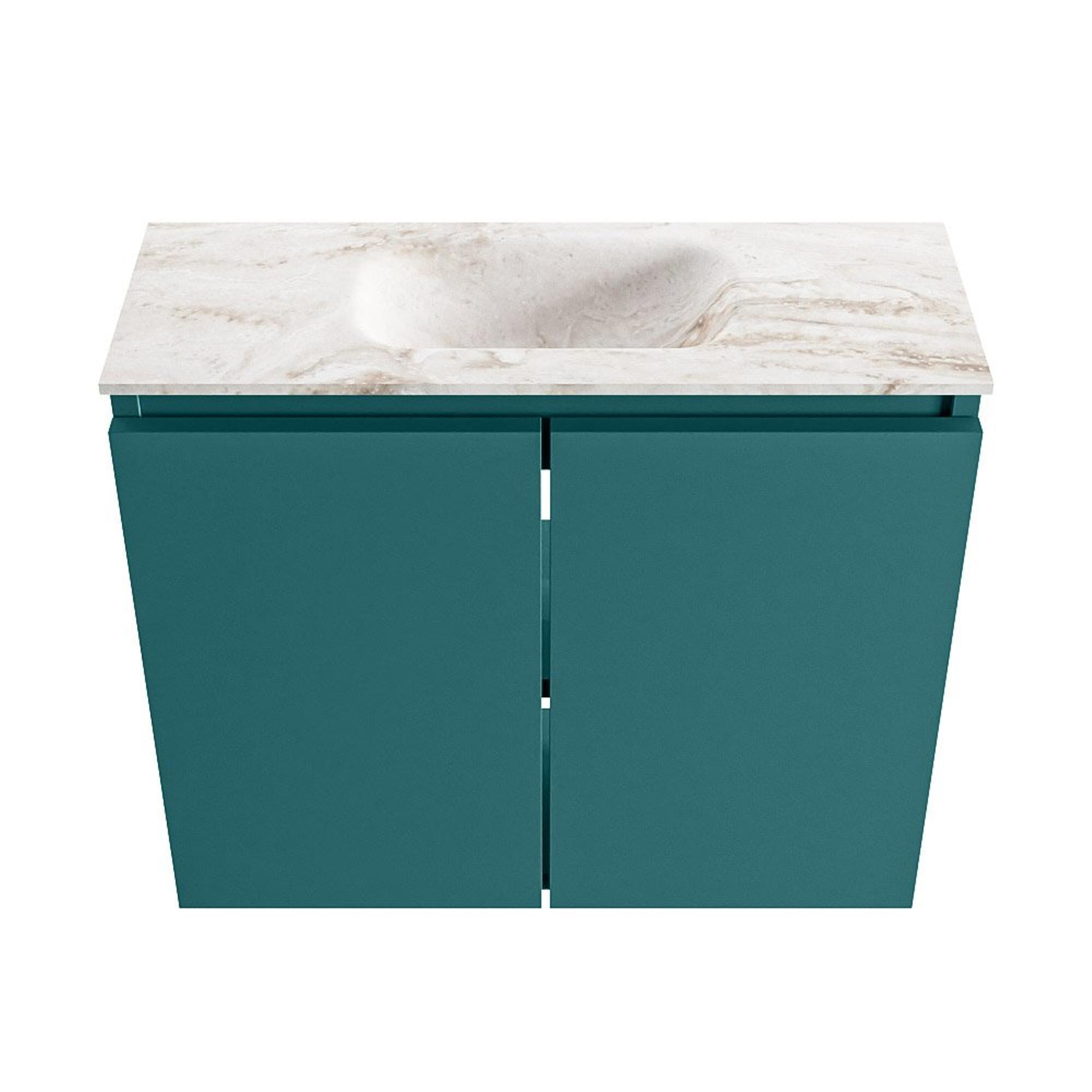 La teinte moderne Smag du meuble forme un beau contraste avec le lavabo Eden dans la nuance douce et beige Frappe. Cette combinaison crée immédiatement un aspect haut de gamme et design qui s’intègre parfaitement dans les salles de bains et toilettes contemporaines. Le lavabo clair donne à l’ensemble une impression de légèreté, tandis que la tonalité verte du meuble apporte une touche chic et actuelle. Le MDF comme matériau de base permet d’obtenir des lignes nettes et des surfaces lisses, ce qui renforce le caractère minimaliste. Grâce aux tons neutres, vous pouvez facilement l’associer à des robinets et accessoires noirs, chromés ou en métal brossé. Vous créez ainsi avec un seul ensemble de meuble une affirmation de style forte, sans que l’espace ne paraisse chargé ou encombré.