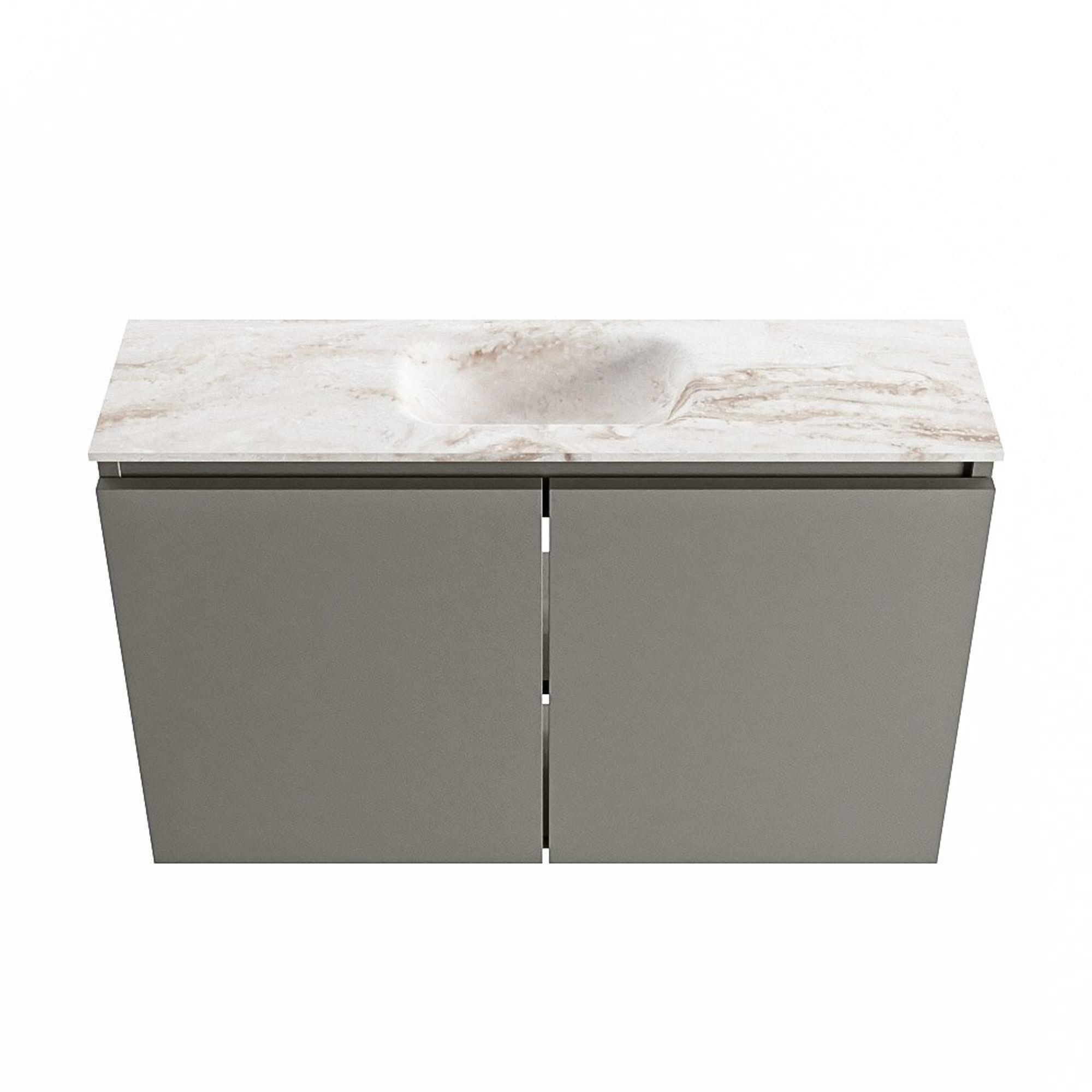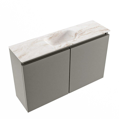 MONDIAZ TURE-DLUX Meuble de toilette 80 cm Smoke. Lavabo EDEN Frappe position milieu. Sans trou de robinet.