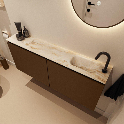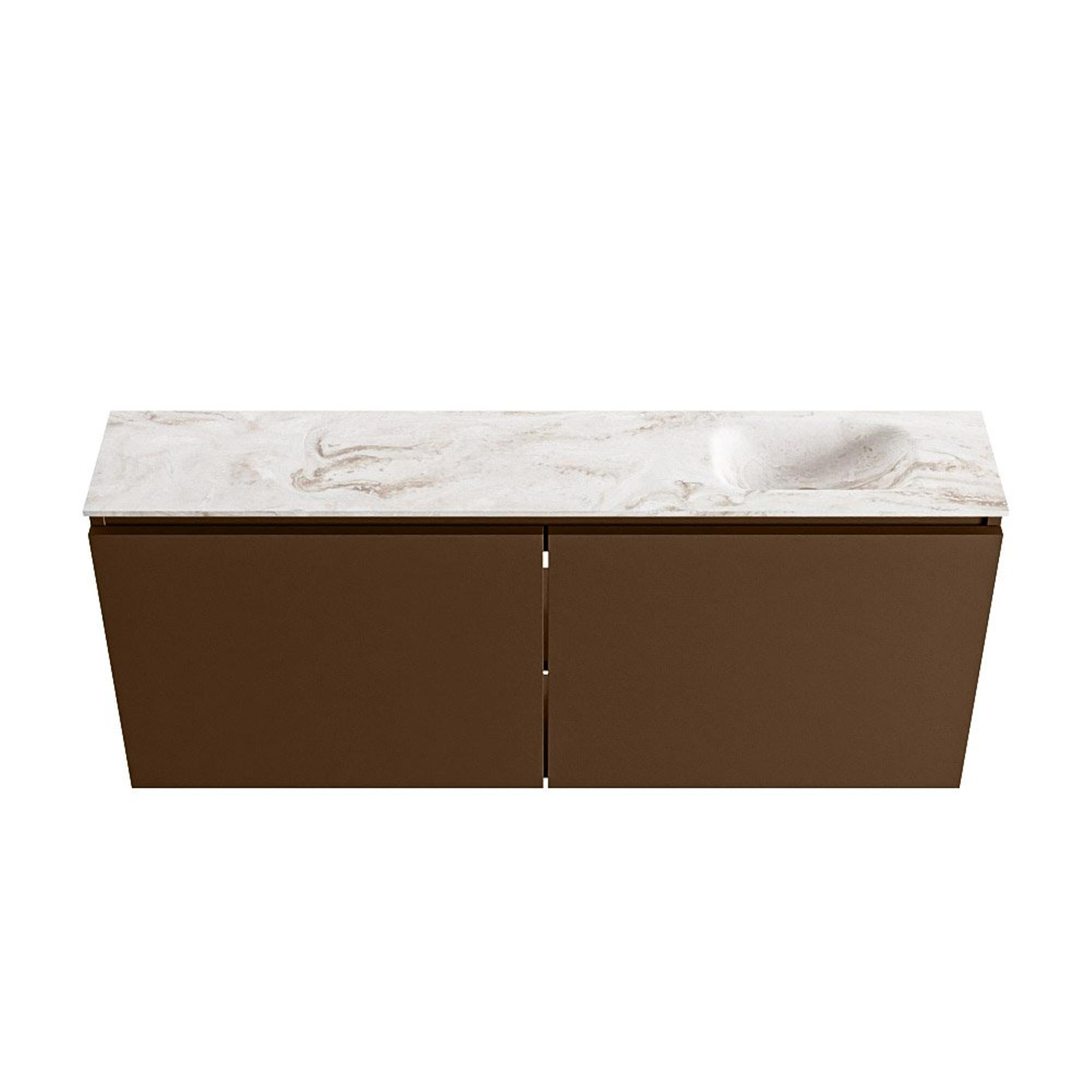 MONDIAZ TURE-DLUX Meuble WC 120 cm Rust. EDEN lavabo Frappe position à droite. Avec 1 trou de robinet.