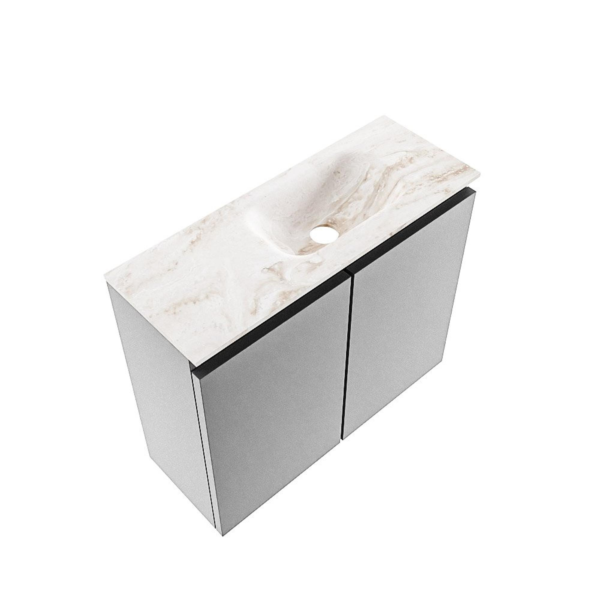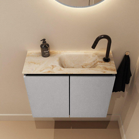 MONDIAZ TURE-DLUX Meuble de toilette 60 cm Plata. Vasque EDEN Frappe position à droite. Avec 1 trou de robinet.