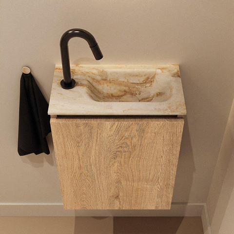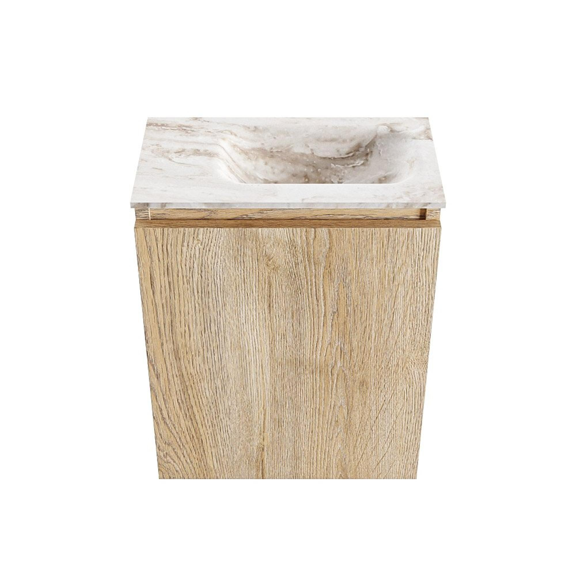 MONDIAZ TURE-DLUX meuble de toilettes 40 cm Washed Oak. EDEN lavabo Frappe position droite. Avec 1 trou de robinet.