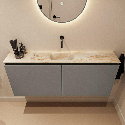 MONDIAZ TURE-DLUX Meuble WC 120 cm Smoke. Lavabo EDEN Frappe position milieu. Sans trou de robinet.